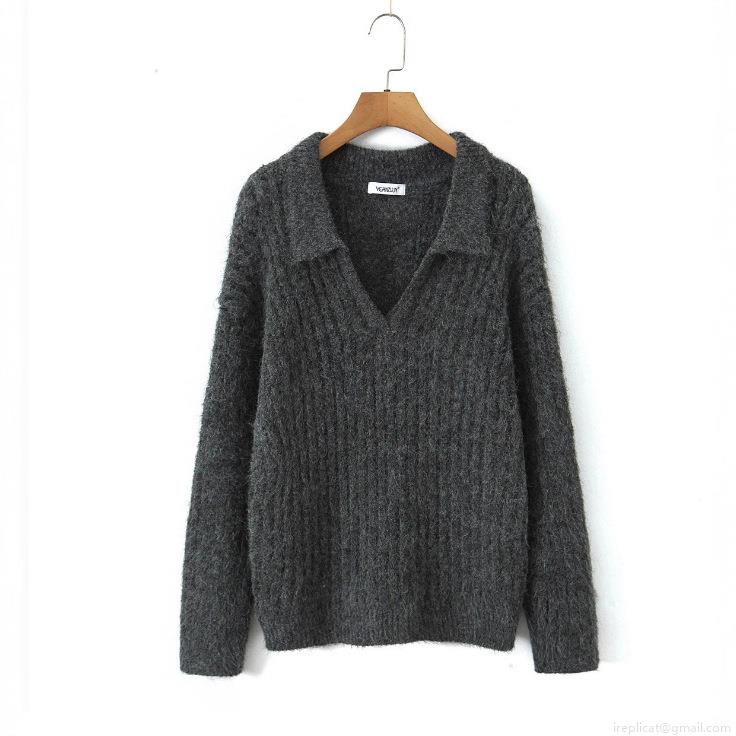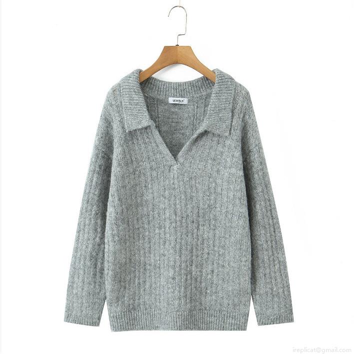 • Women's Long Sleeve Polo Collar Knit Sweater Wool Blend V-Neck Ribbed Pullover Loose Fit Casual Solid Color Tops for Autumn Winter