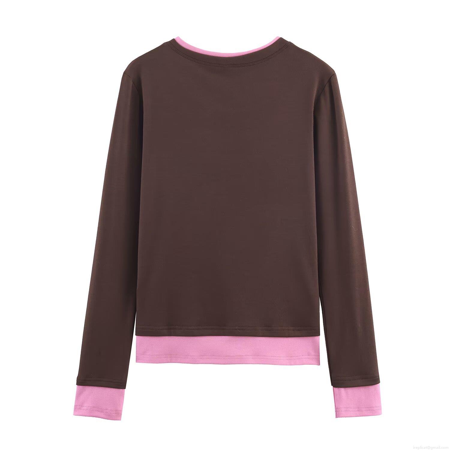 • Women's Patchwork Long Sleeve T-Shirt Loose Fit Fake Two-Piece Contrast Color Round Neck Polyester Rib Knit Pullover Casual Streetwear Autumn Top