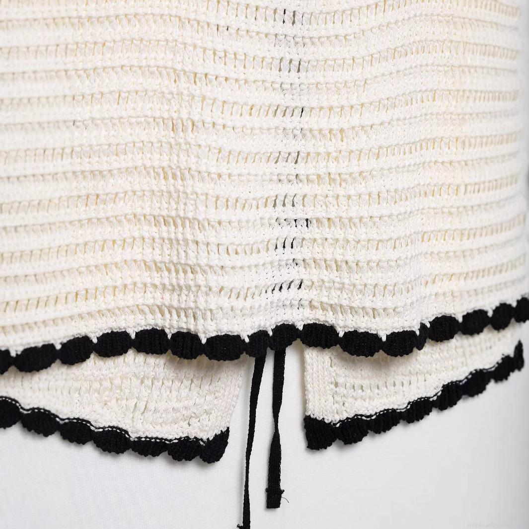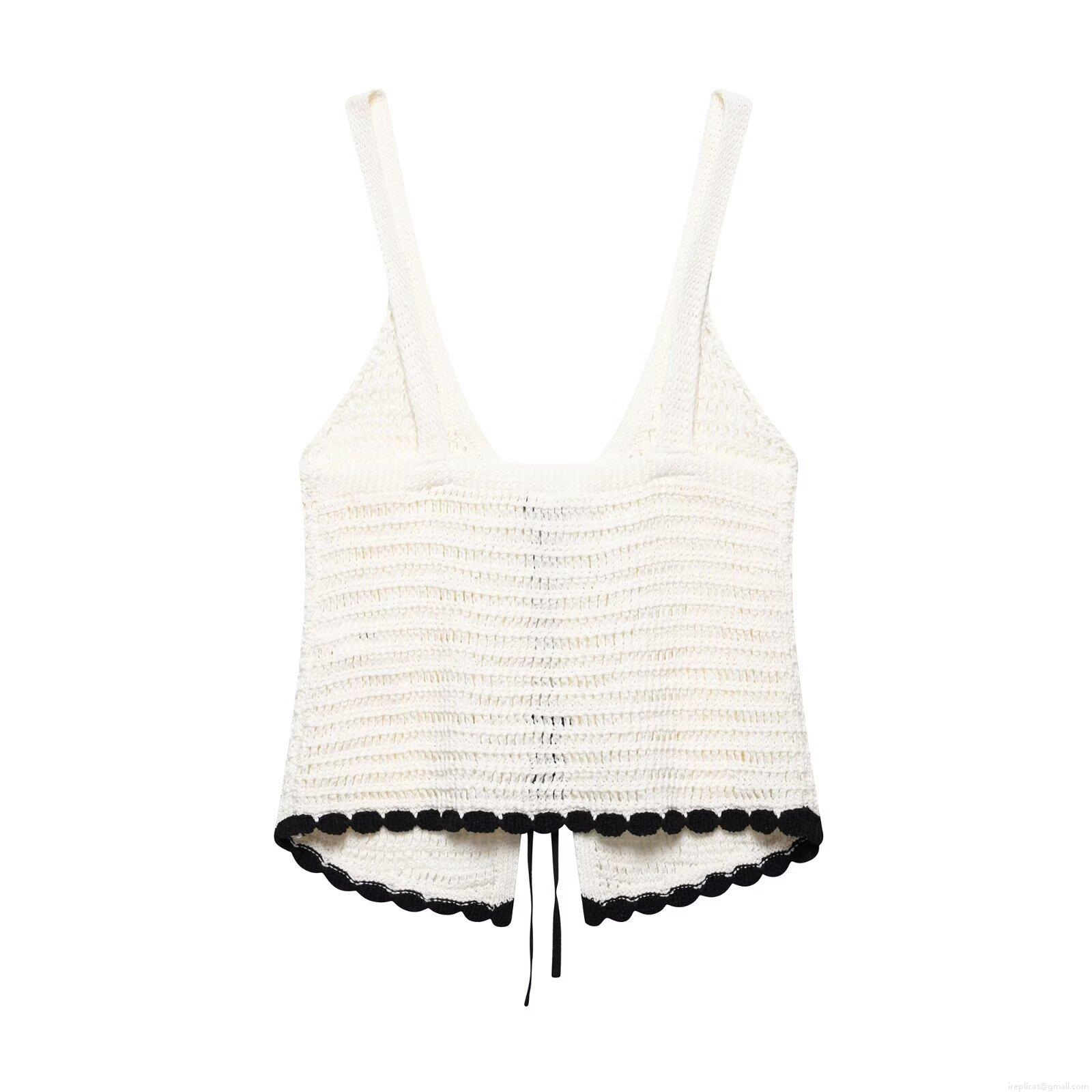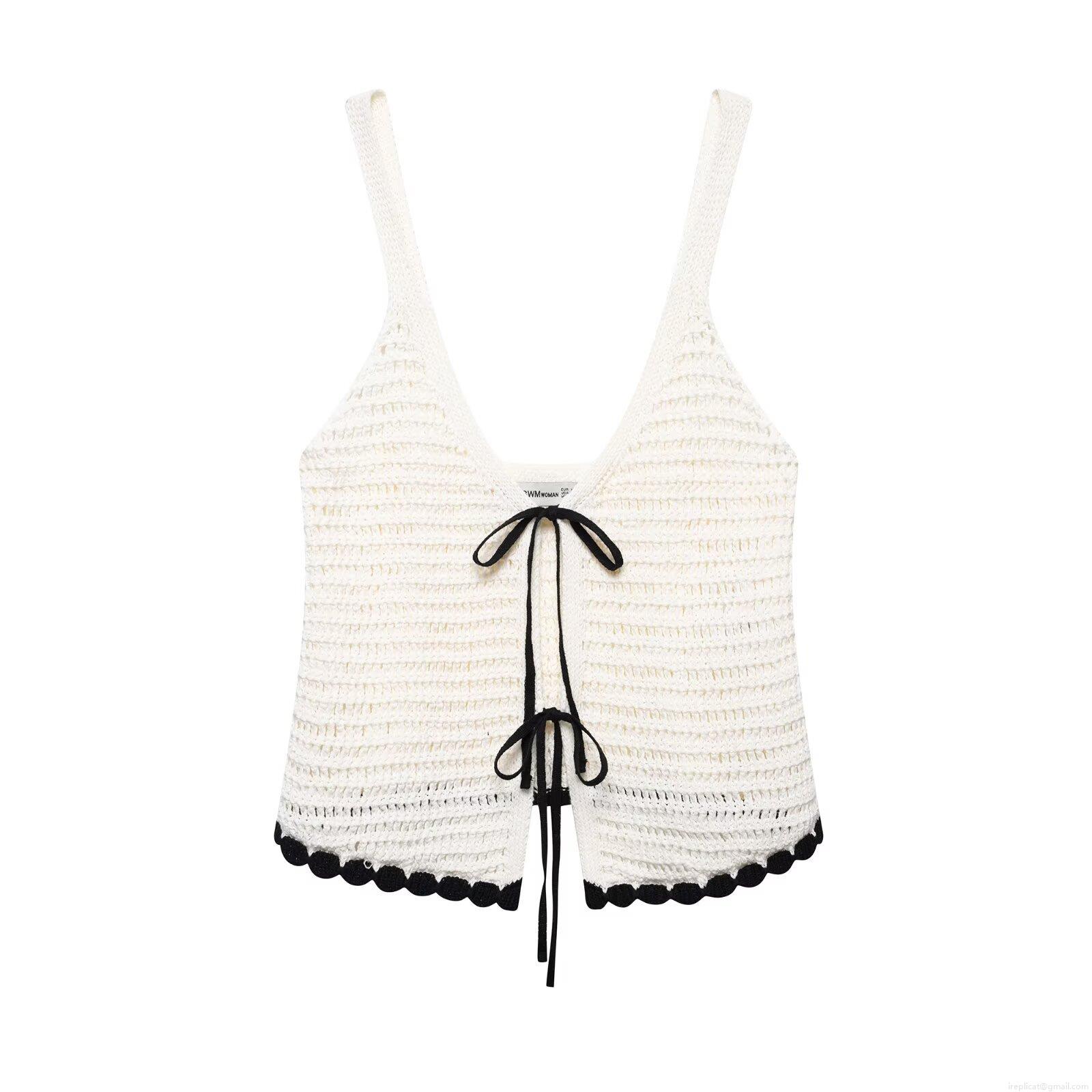 • Women's Retro Crochet Knit Cami Top 100% Polyester Contrast Scalloped Trim Bow Tie Front Summer Beachwear Streetwear Casual Vintage Sexy V-Neck Sleeveless Tank Top