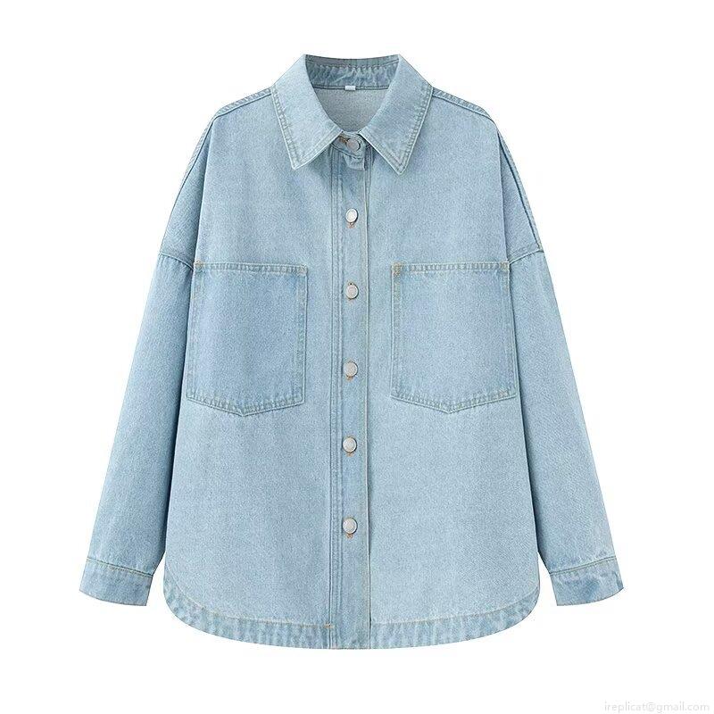 • Women's Retro Loose Denim Shirt Jacket Casual Long Sleeve Cotton Polyester Blend Western Style Streetwear Blouse Top With Double Pockets For Spring Autumn