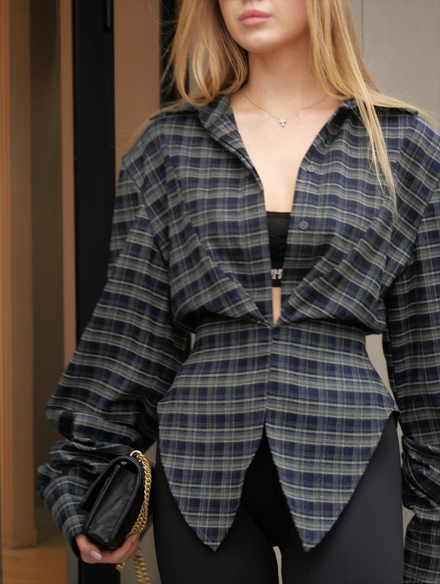• Women's Retro Plaid Shirt Jacket Long Sleeve Irregular Hem Waist Cinching Loose Contrast Color Blouse Streetwear Fashion Top