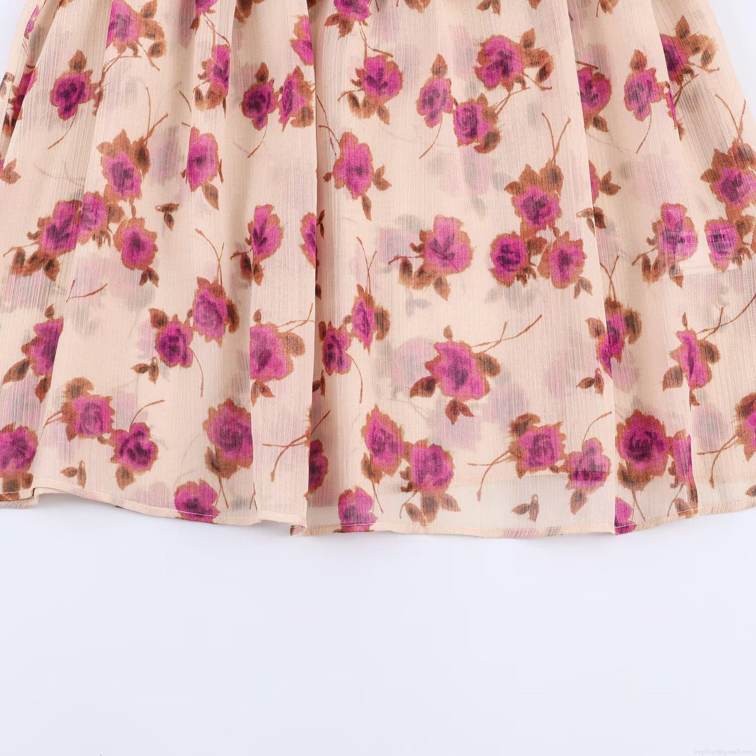 Floral Pattern, Ruffles, Pleats, Layered Decoration, Bell Sleeves