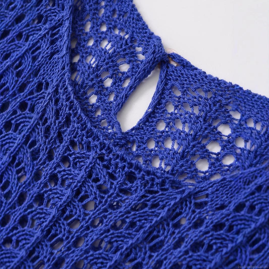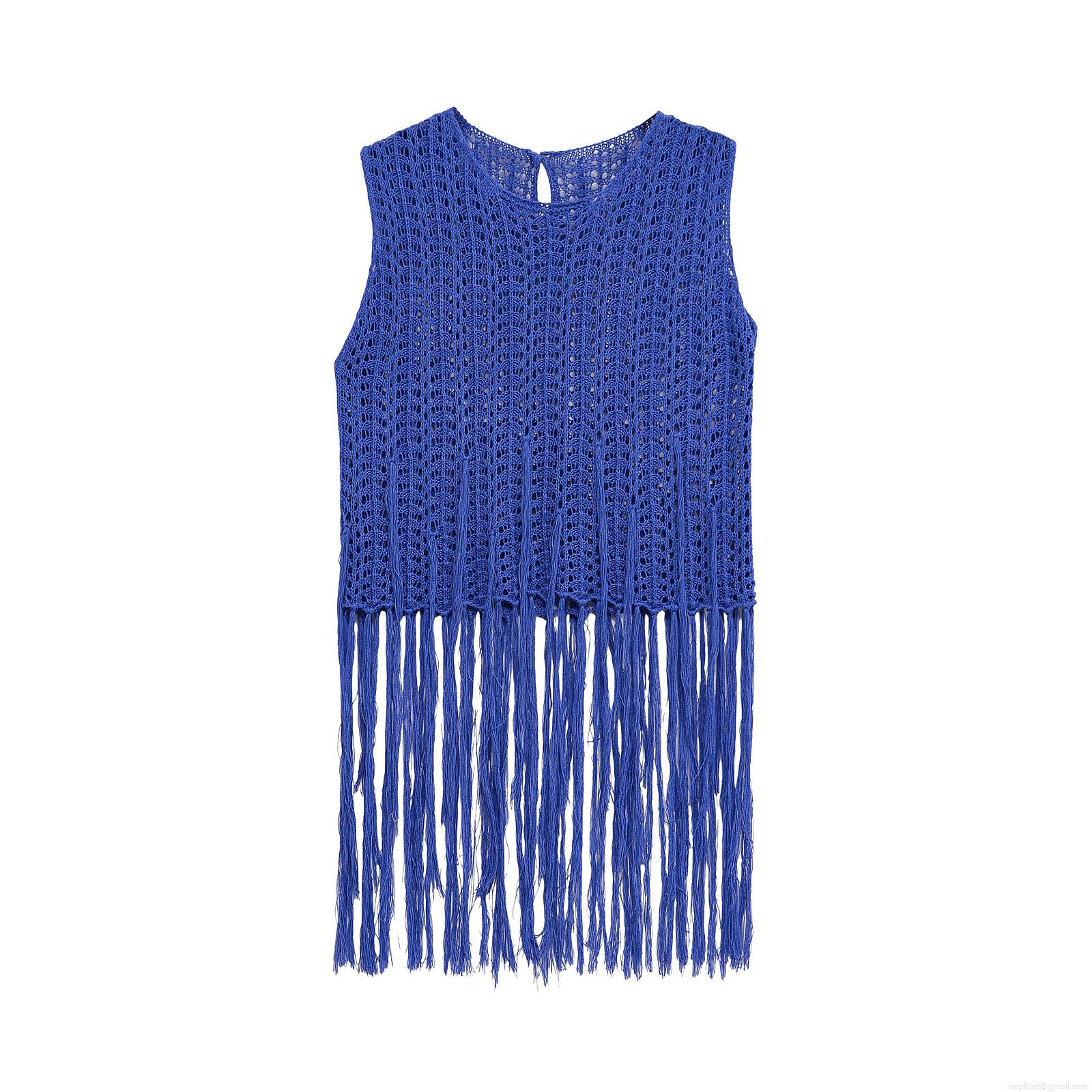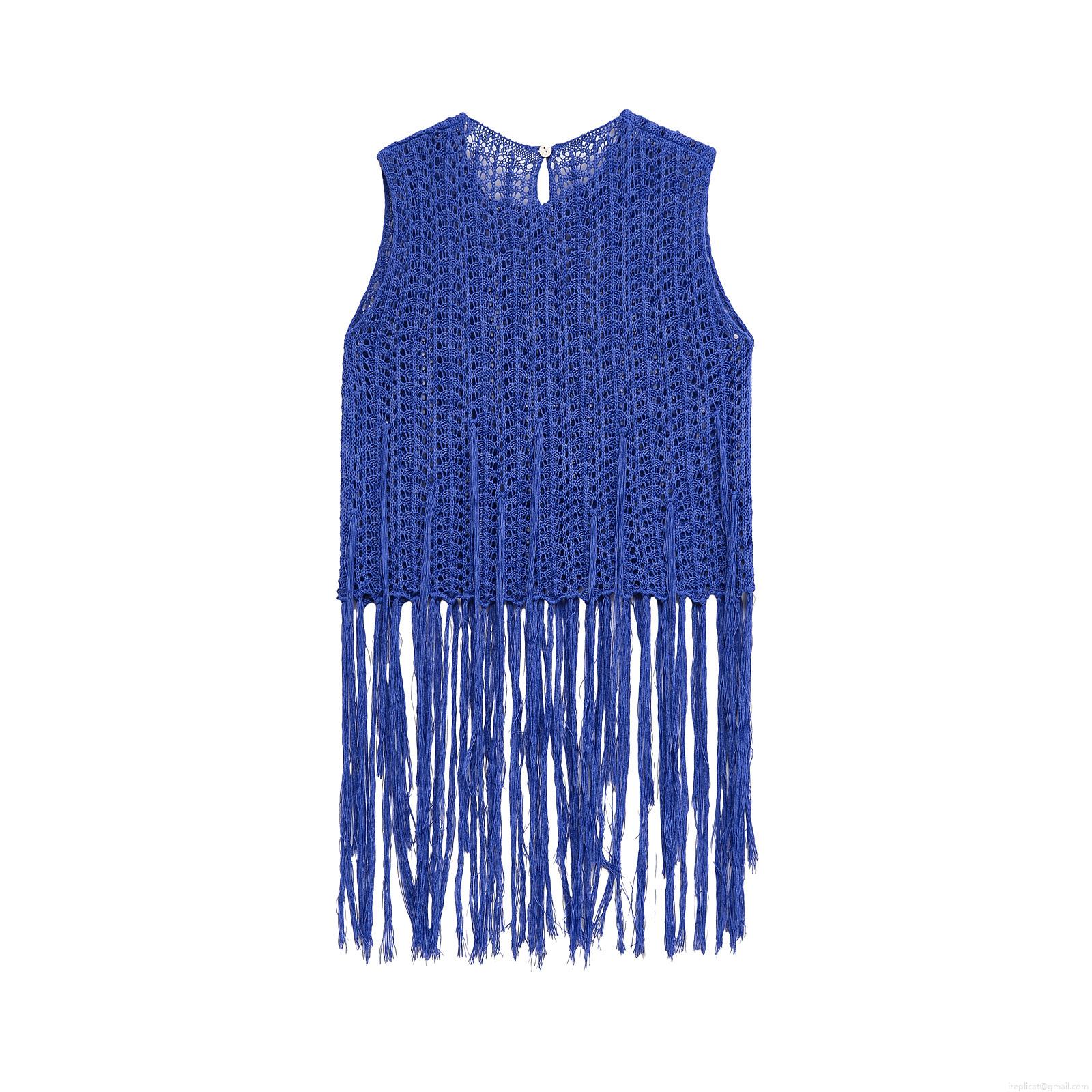 • Women's Royal Blue Crochet Knit Vest Top With Long Fringe Sleeveless Round Neck Pullover Cropped Tank Top For Summer Vacation Party Chic Tops