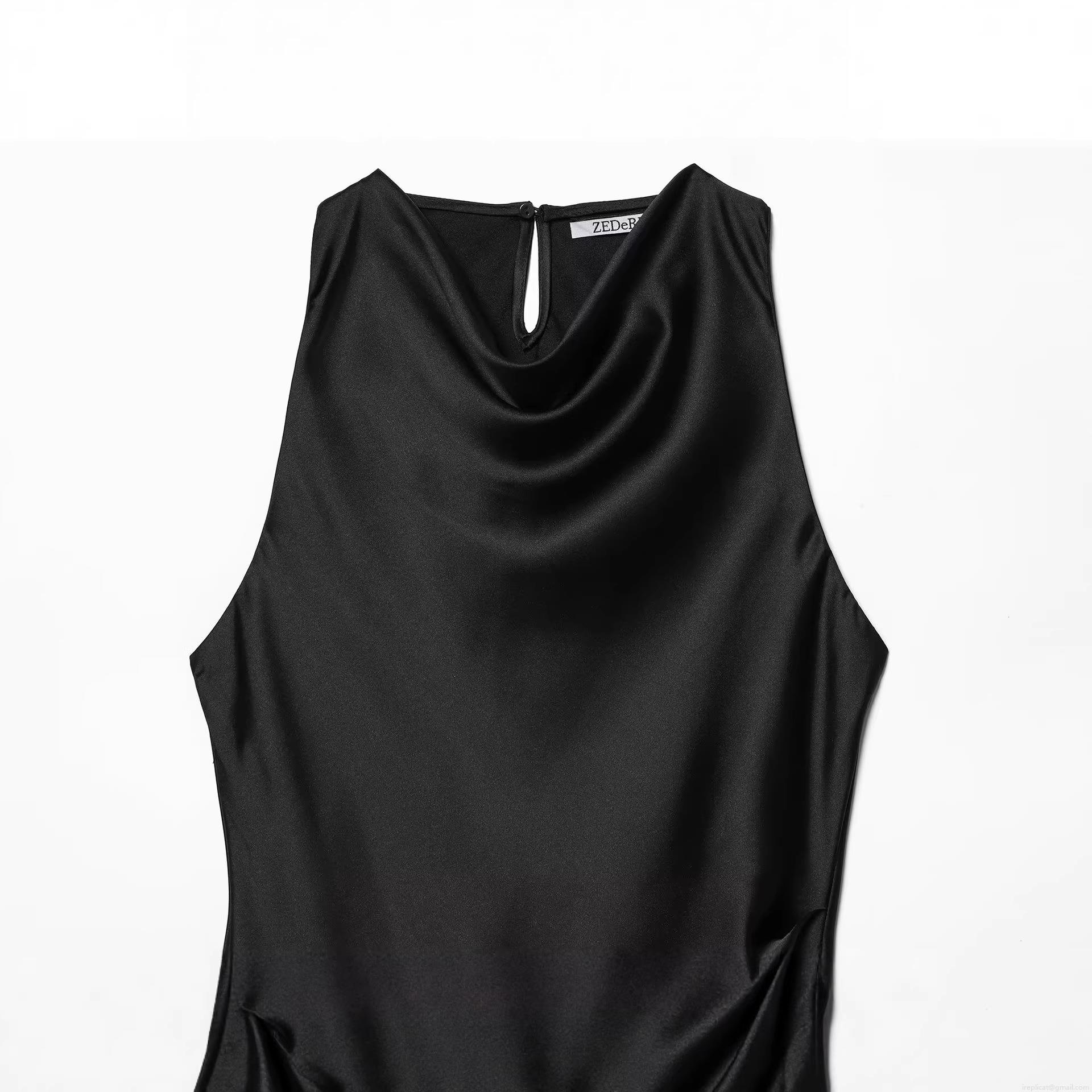 • Women's Satin Cowl Neck Sleeveless Top Asymmetric Hem Long Tassel Fringed Blouse Elegant Party Streetwear Solid Black Polyester Satin Shirt