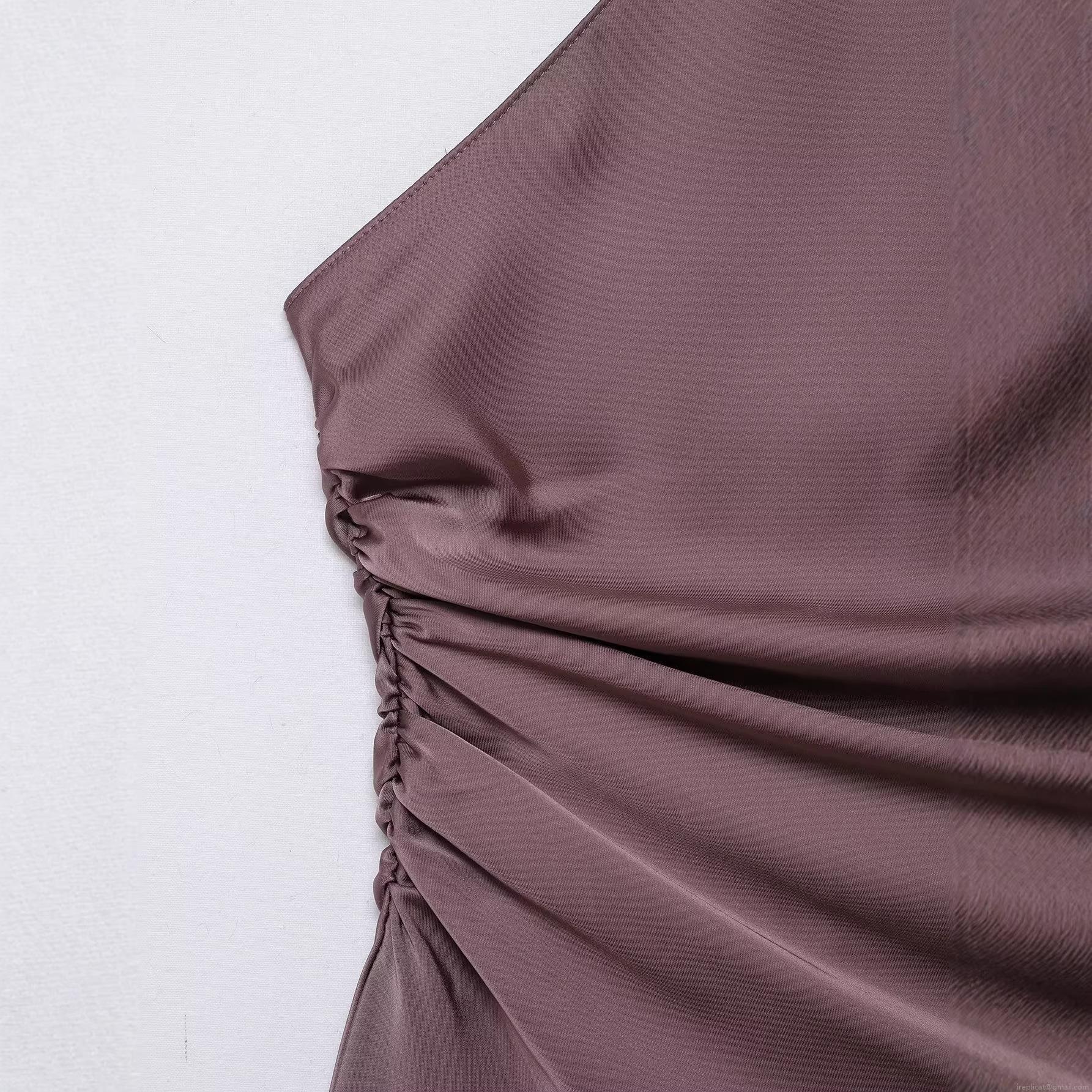 Women's Sexy Asymmetric One Shoulder Halter T-Shirt Satin Texture Backless Ruched Sleeveless Purple Slim Fit Top Fashion Streetwear Elegant Polyester Blouse