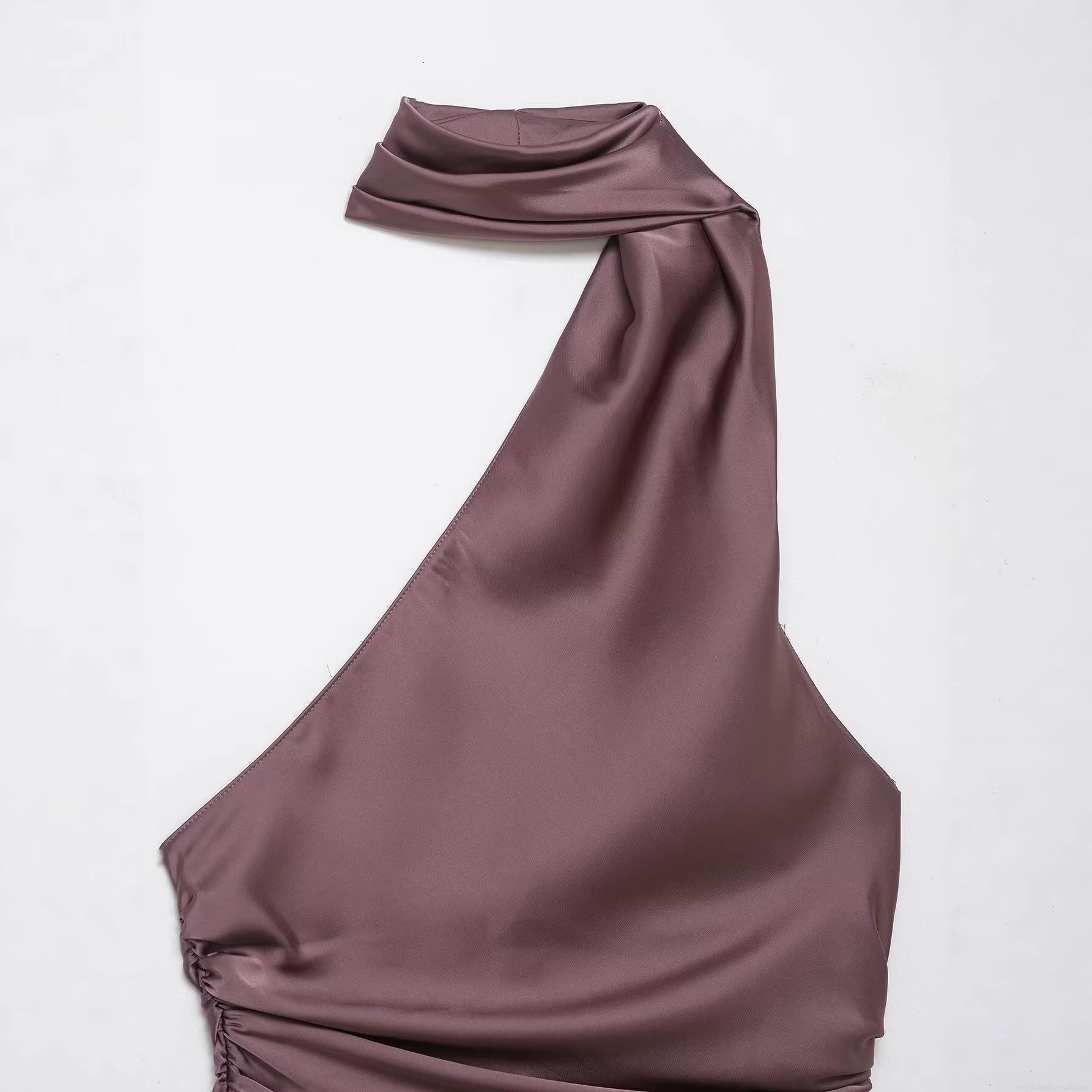 Solid Color, Irregular, Asymmetric, Pleats, Neckband, Backless