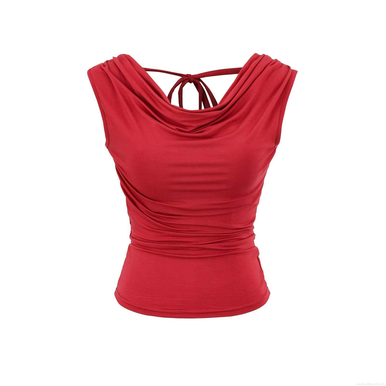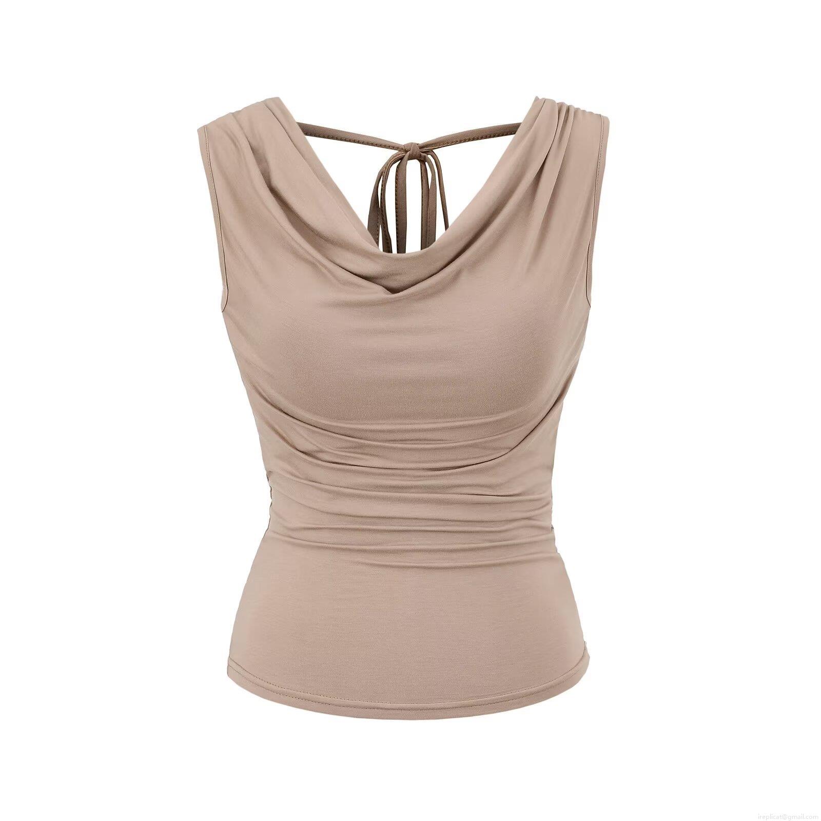 • Women's Sexy Backless Cowl Neck T-Shirt Sleeveless Ruched Tied Summer Top With Chest Pads Rayon Spandex Streetwear Dating Slim Fit Plain Tank Top