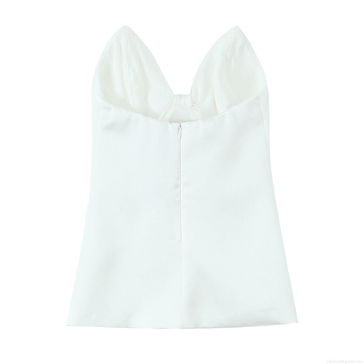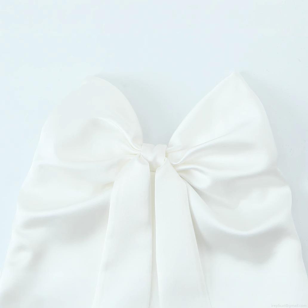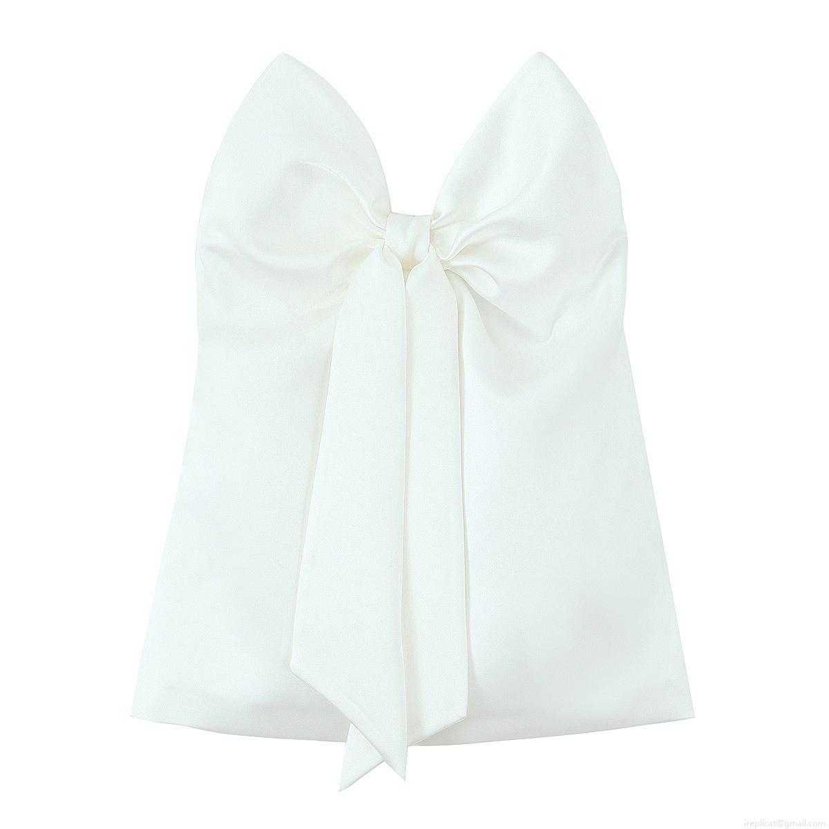 • Women's Sexy Big Bow Bustier Top Satin Textured Polyester Sleeveless Back Zipper Crop Camisole For Evening Party Clubwear White