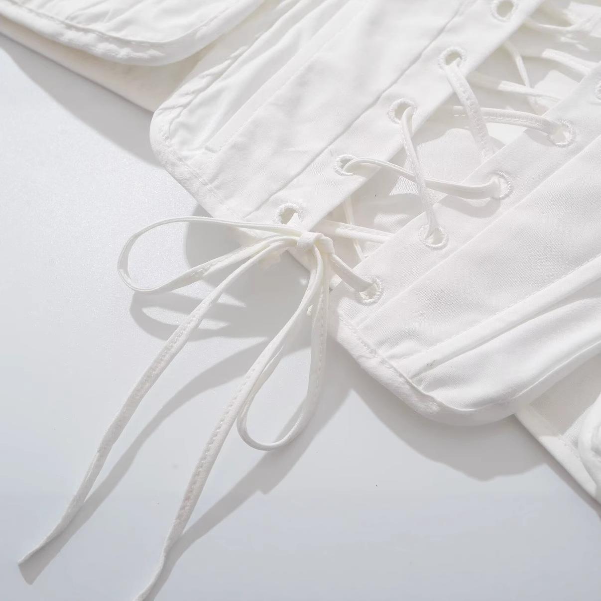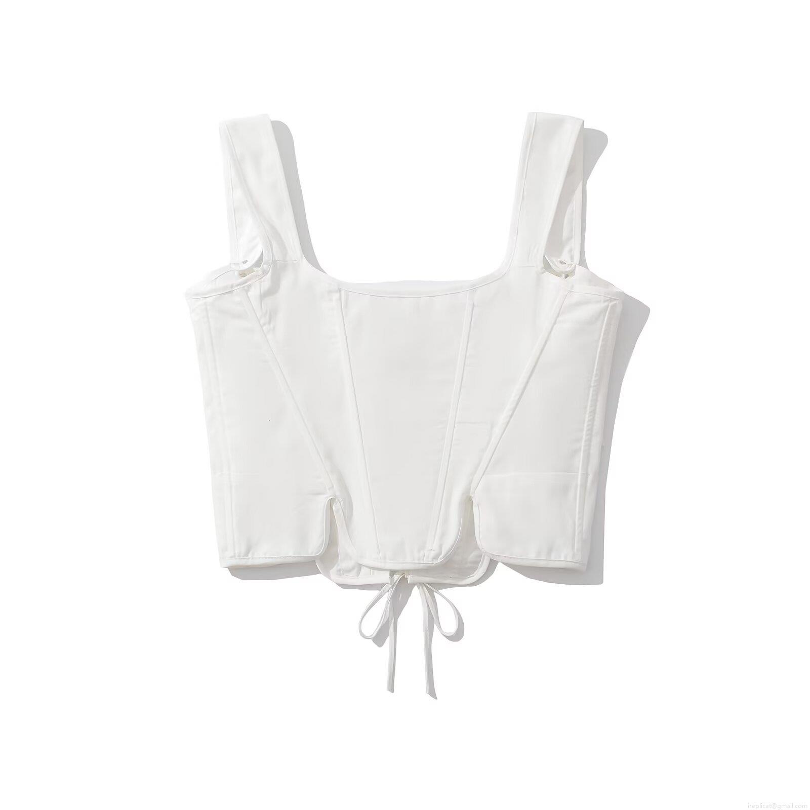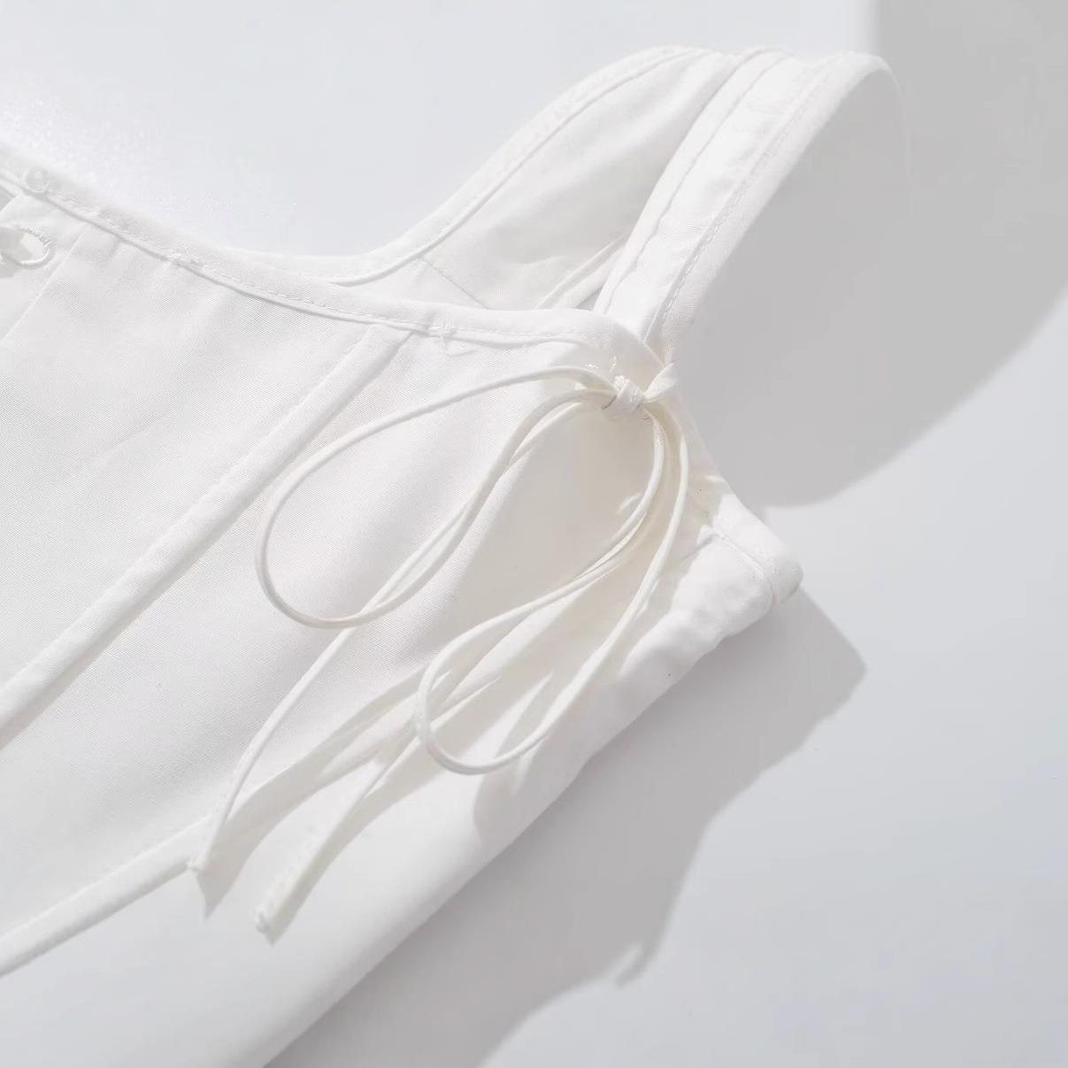 Women's Sexy Corset Tank Top Lace-up Front Slim Fit Fishbone Cami With Bow Shoulder Straps Summer Streetwear White Woven Crop Top