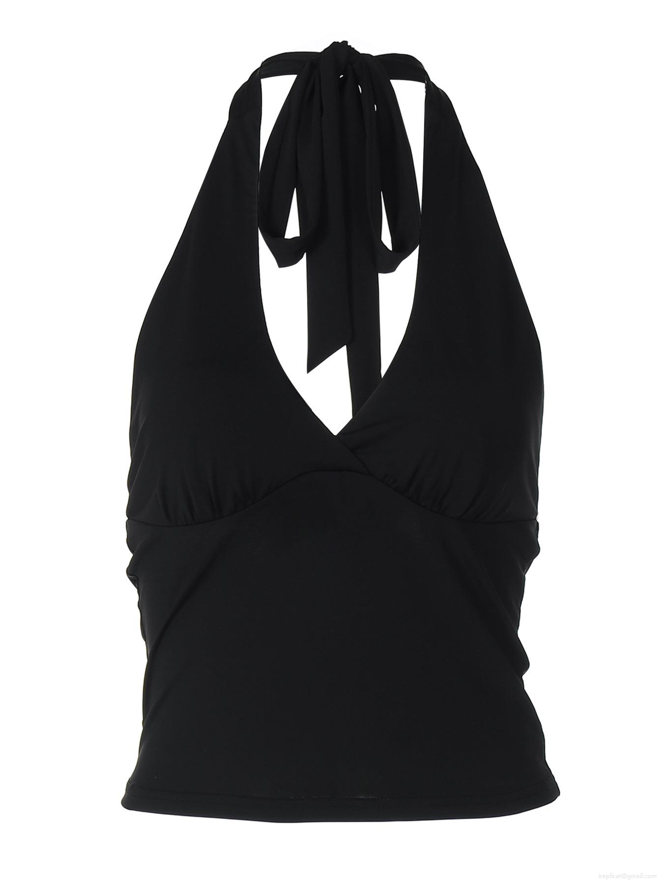 • Women's Sexy Halter Neck Backless Crop Top Deep V Neck Nylon Spandex Slim Fit Solid Color Summer Sleeveless Top Streetwear