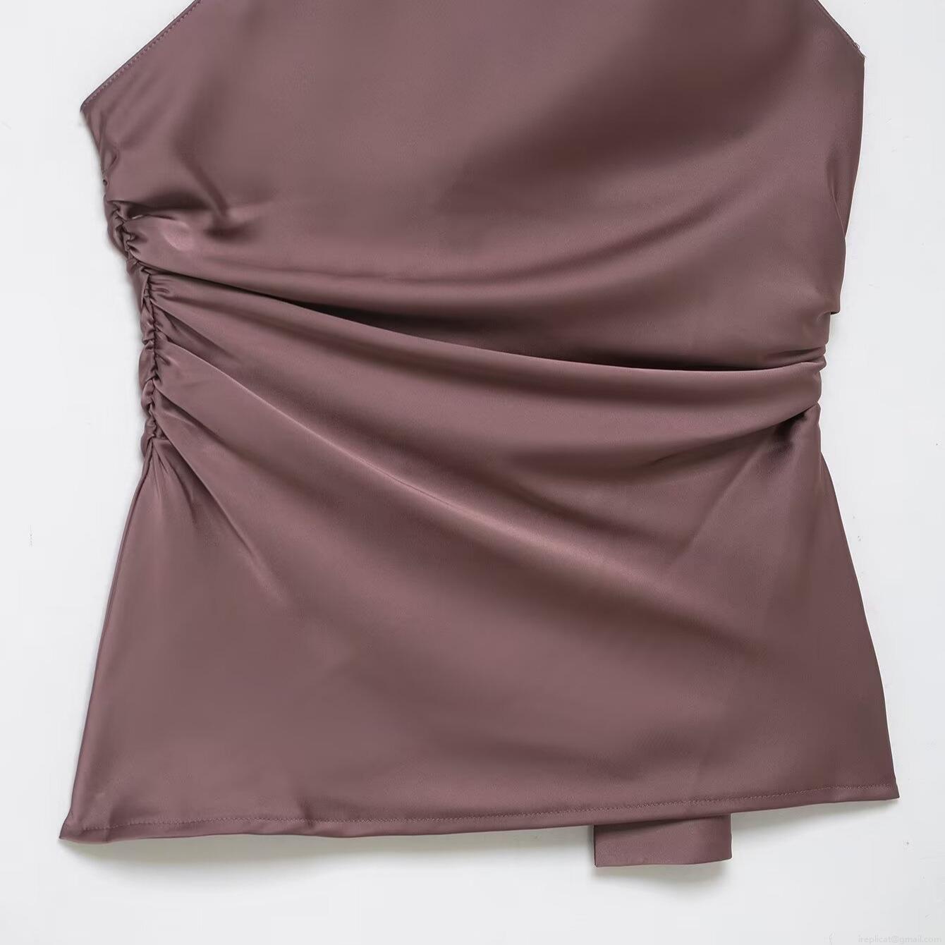 • Women's Sexy Halter Neck Backless Scarf Top Satin Silk Asymmetric Ruched Sleeveless Elegant Party Clubwear Camisole With Long Streamer For Ladies