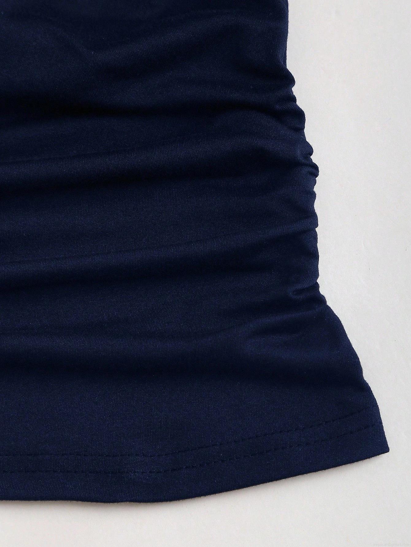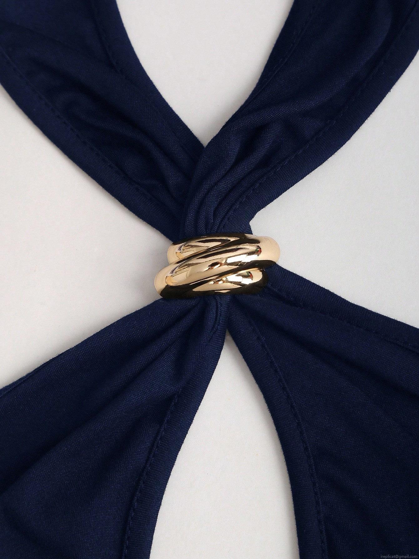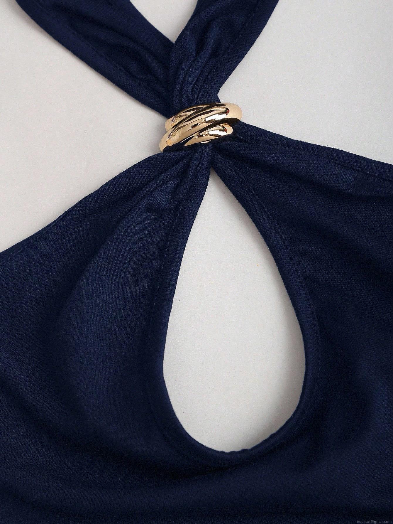 • Women's Sexy Halter Neck Backless Vest Slim Fit Hollow Out Crop Top With Gold Metal Ring Decoration Polyester Spandex Dark Blue Tank Top For Summer Party Clubwear