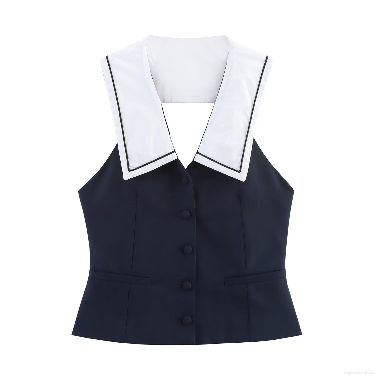 • Women's Sexy Halter Top Sailor Collar Backless Colorblock Vest Sleeveless V Neck Streetwear Polyester Top For Summer Daily Ladies