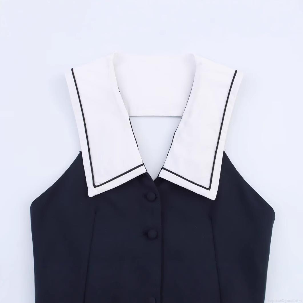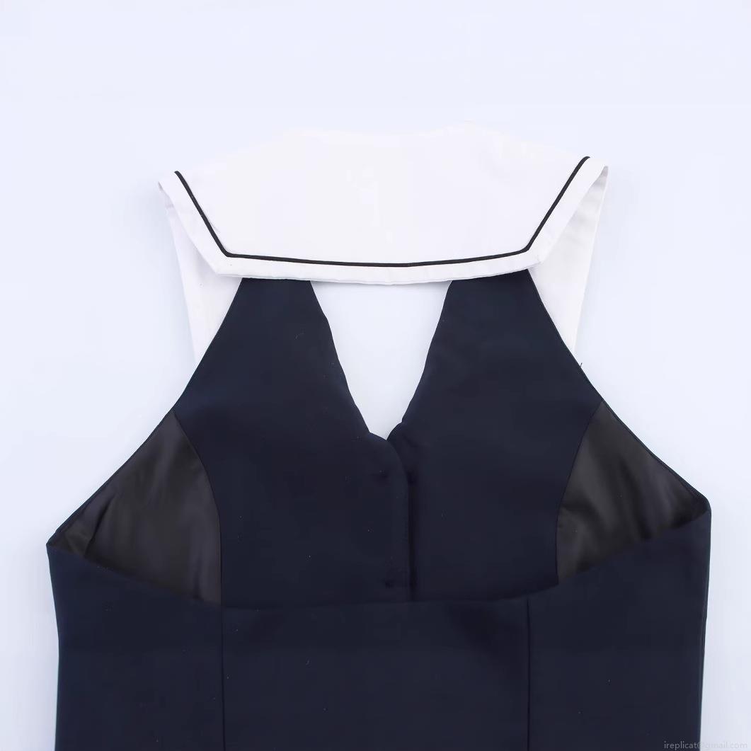 Color Blocking, Neckband, Backless, Single-breasted, Sailor Collar, Naval Commander