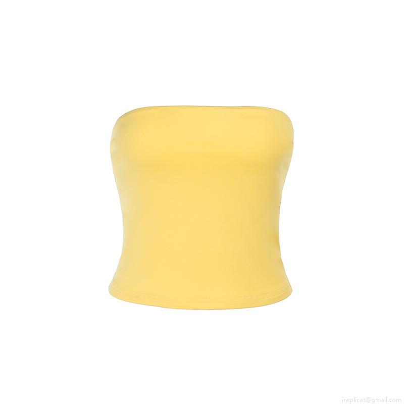 • Women's Sexy Strapless Tube Top Polyester Spandex Slim Fit Cropped Tank Top 2025 Spring New Style Streetwear Party Clubwear Solid Color Bright Yellow Summer Top