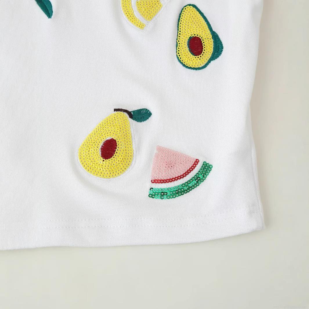 Fruit, Cherry, Lemon, Watermelon, Avocado, Ribbed Knit, Sequin Embroidery