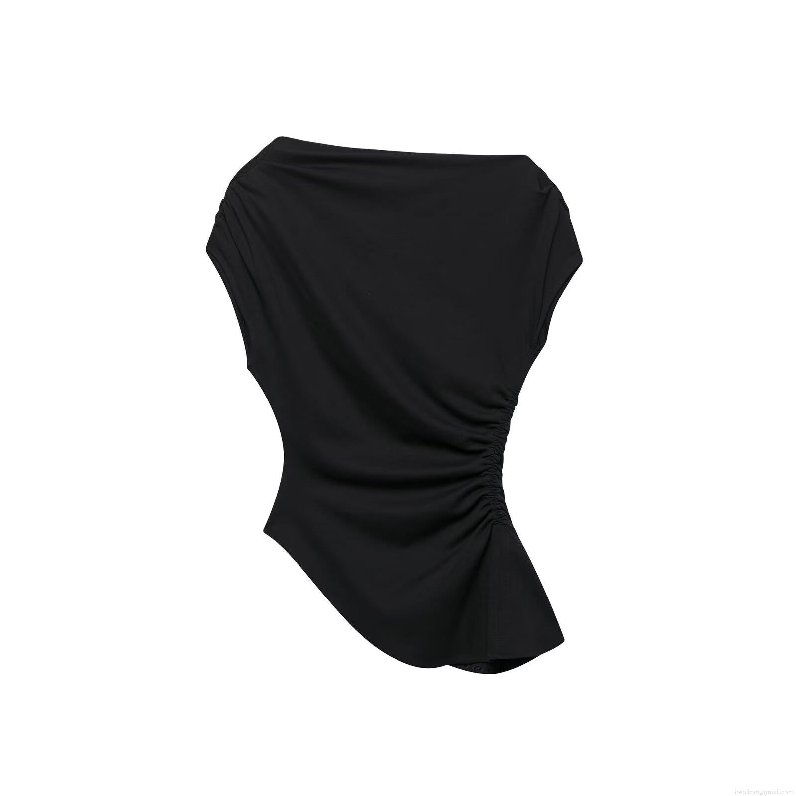 Women's Sleeveless Ruched T-Shirt Asymmetric Hem Polyester Spandex Stretch Top Casual Fashion Streetwear Sleeveless Vest For Women Girls