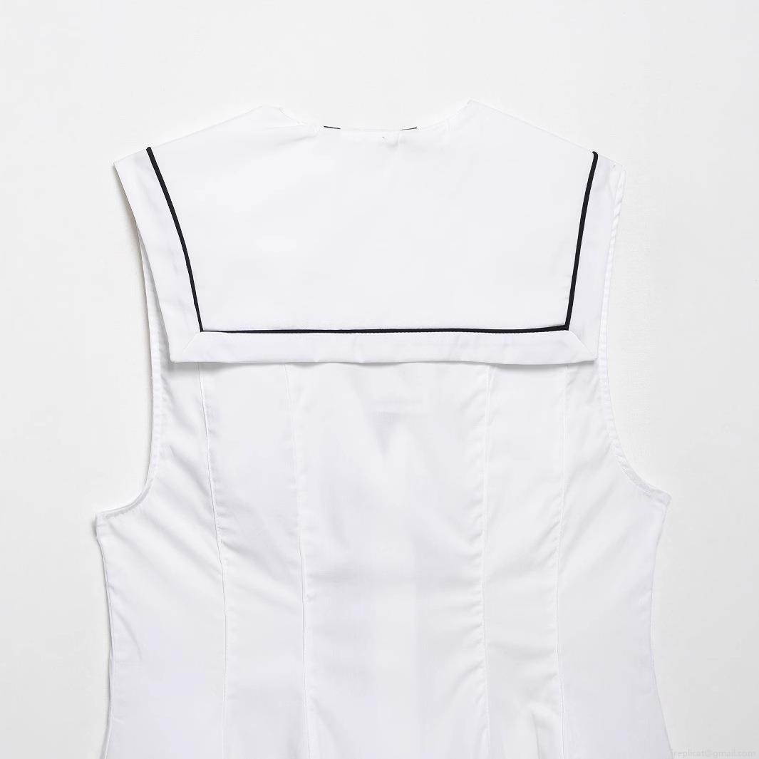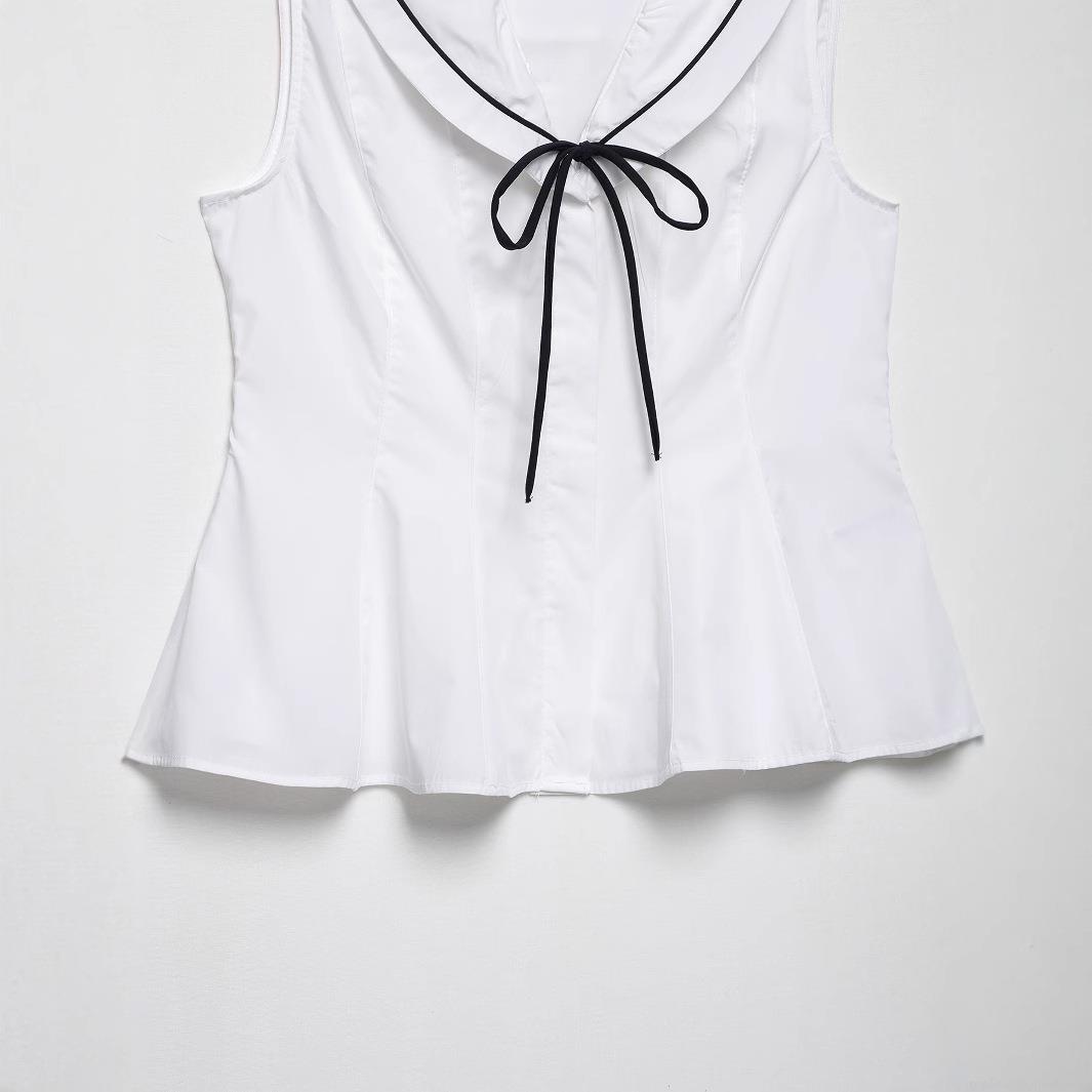 • Women's Sleeveless Sailor Collar Blouse Polyester Bow Knot Slim Fit Contrast Trim Top Sweet Preppy Style White Poplin Shirt For Summer