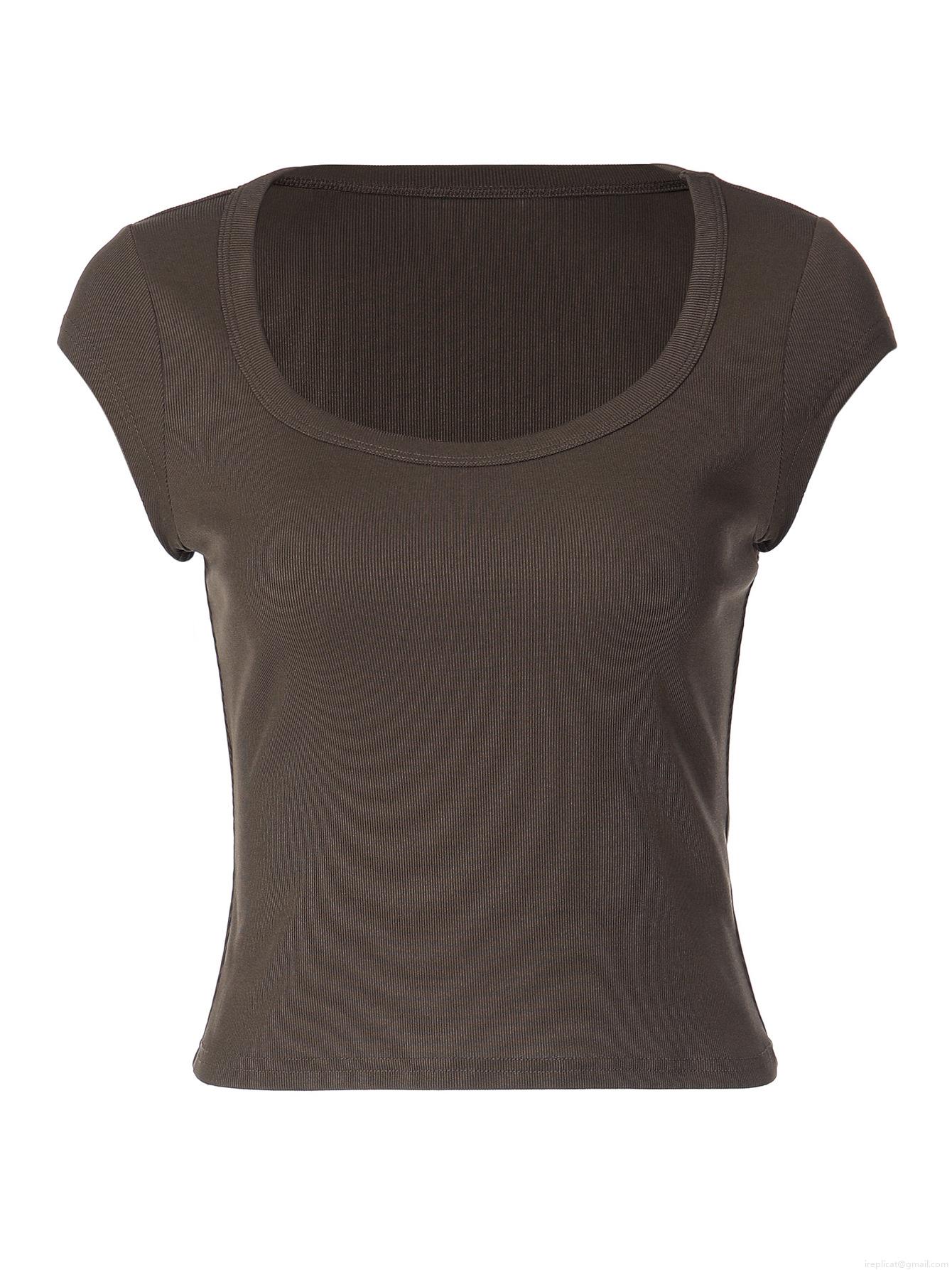 • Women's Slim Fit Ribbed Knit T-Shirt Sexy U Neck Short Sleeve Crop Top Solid Color Summer Casual Streetwear Tee For Women Polyester Spandex