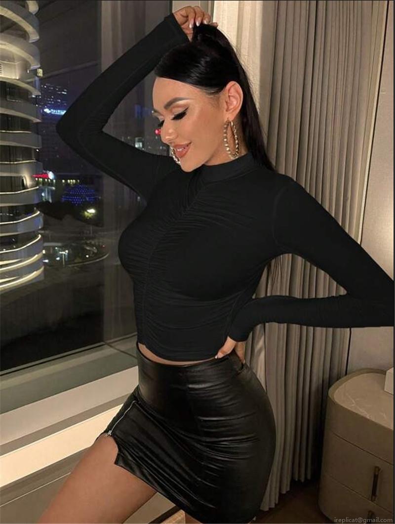 • Women's Slim Fit Ruched T-Shirt Sexy Mock Neck Long Sleeve Pullover Solid Color Polyester Blend Base Layer Top For Daily Casual Wear