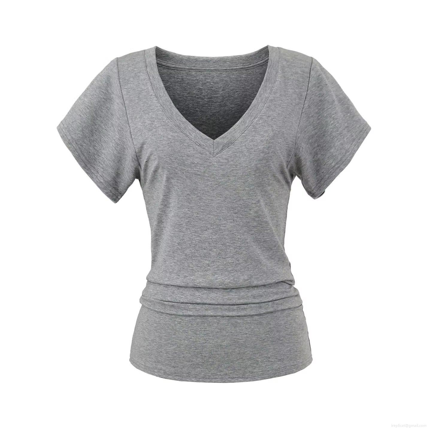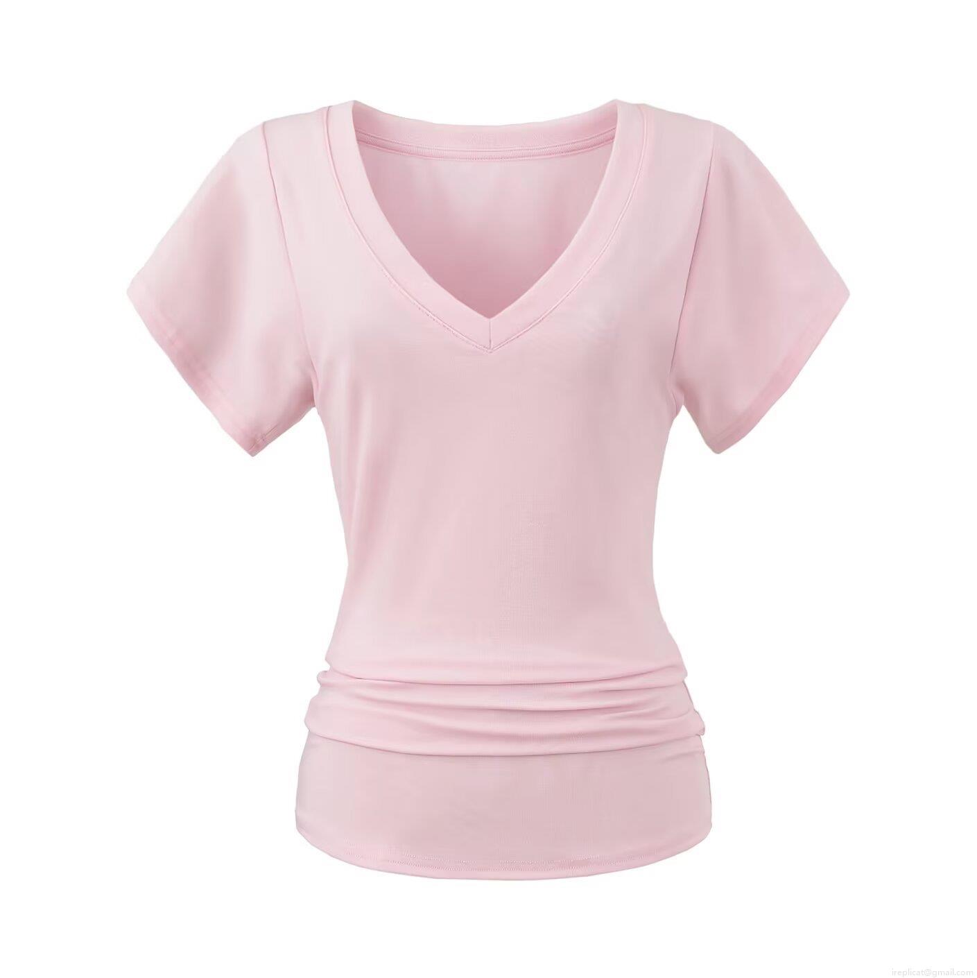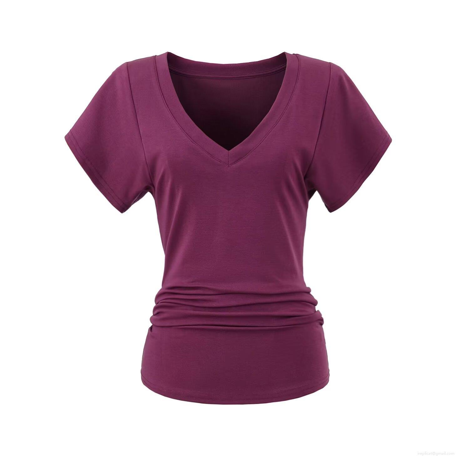 • Women's Slim Fit V Neck T-Shirt Lyocell Elastane Ruched Waist Short Butterfly Sleeve Summer Casual Chic Tee Top