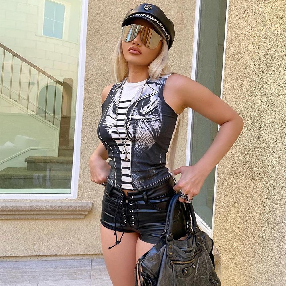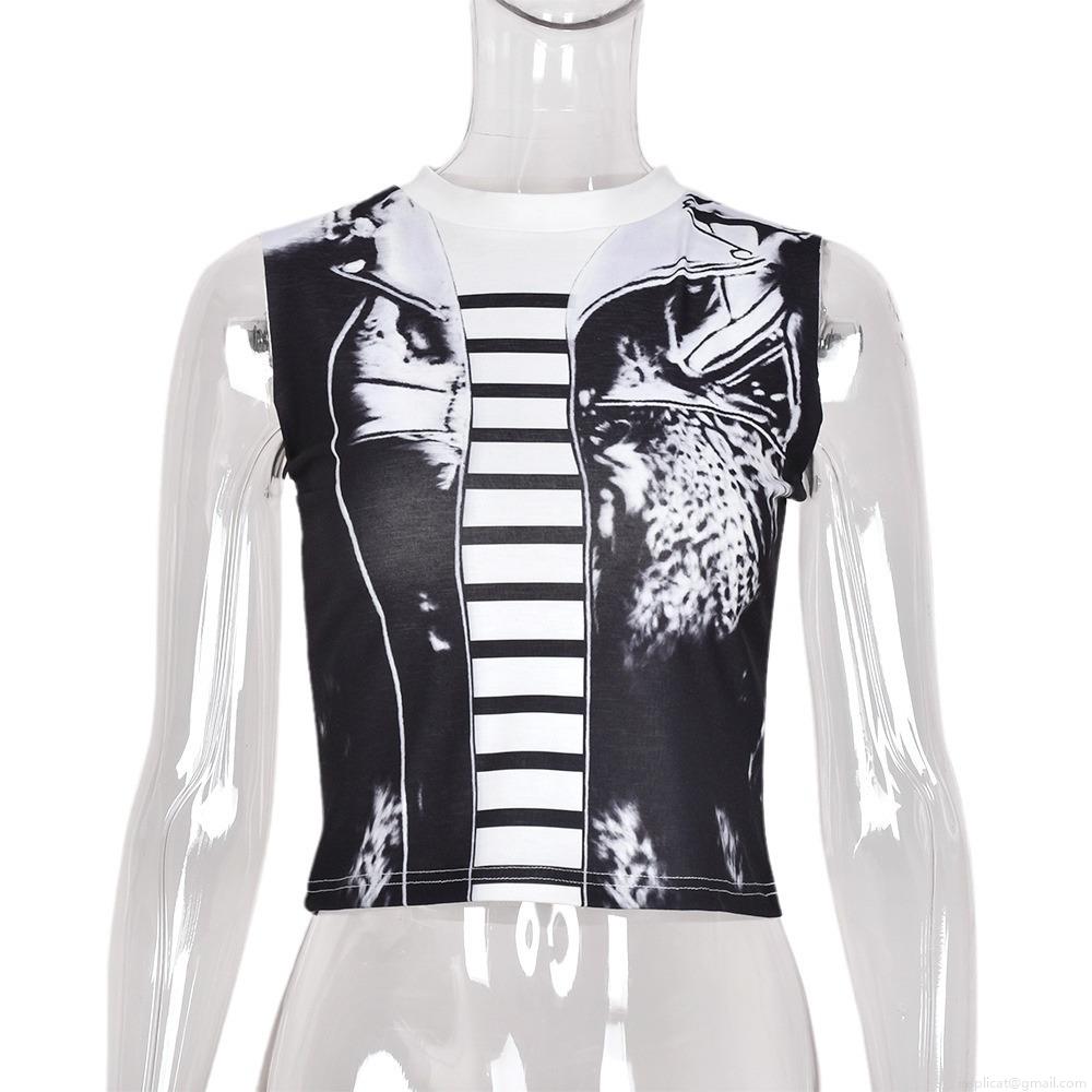 Women's Streetwear Graphic Print Tank Top Polyester Hollow Out Sleeveless Crop Top Sexy Slim Fit Summer Clubwear Vest Fashion Apparel