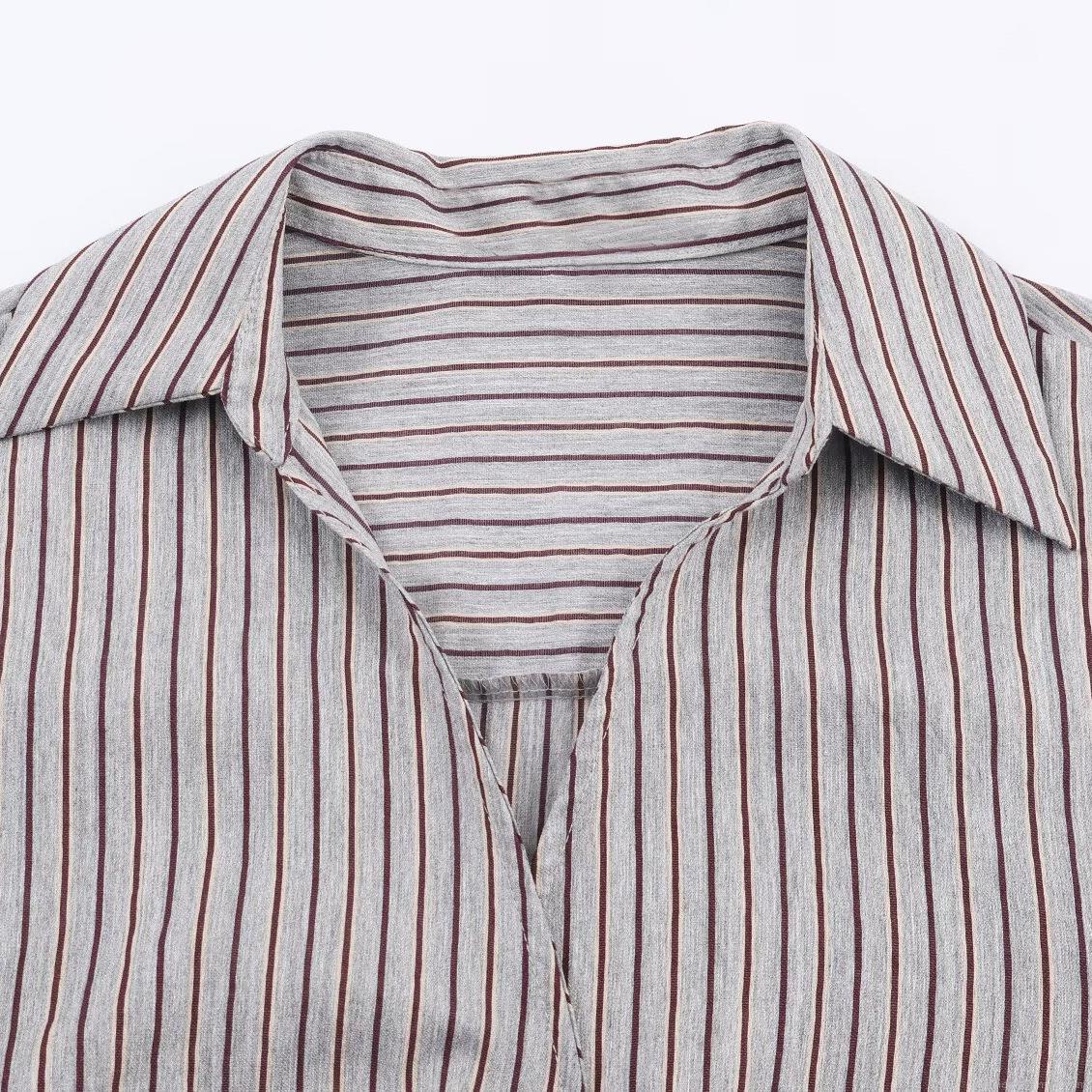• Women's Striped Long Sleeve Blouse Casual Loose Asymmetrical Hem Shirt Side Tie Bow V-Neck Turn-down Collar Cotton Blend Tops For Women Office Daily