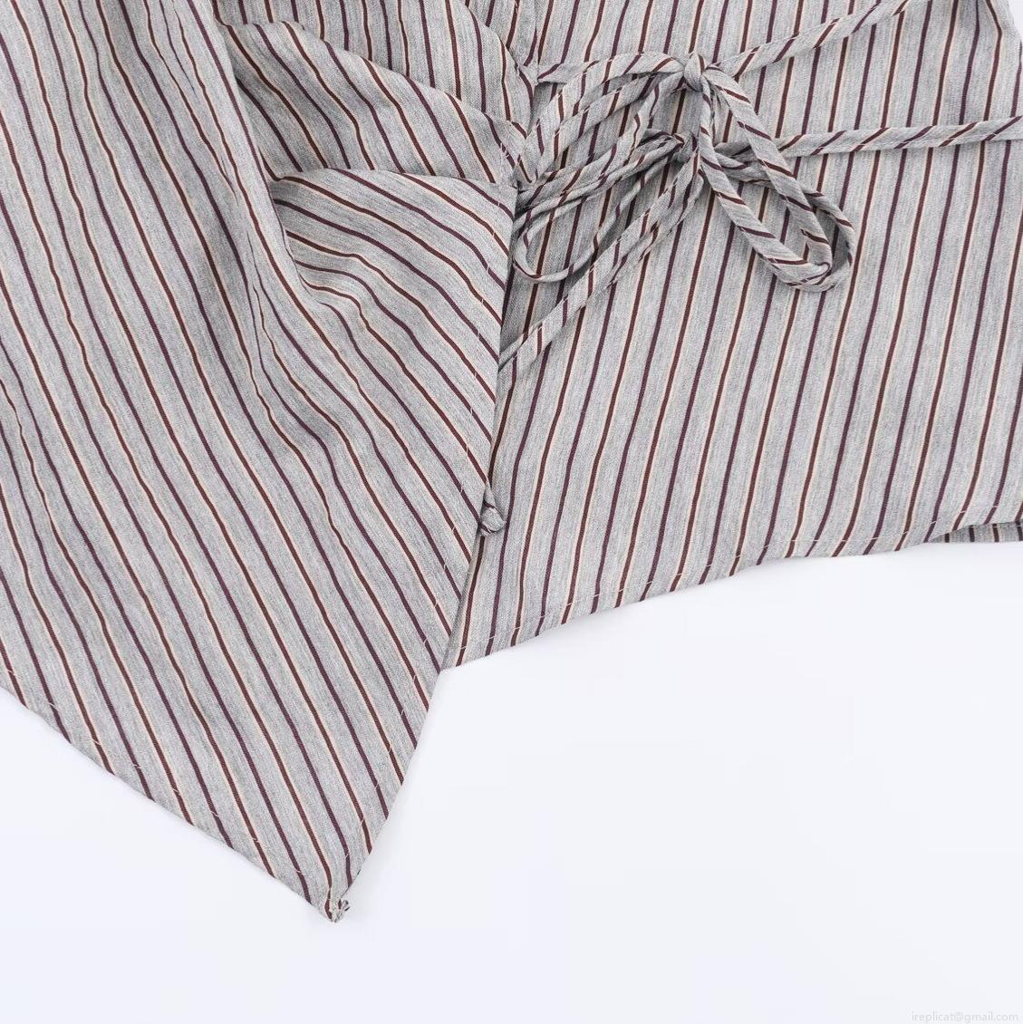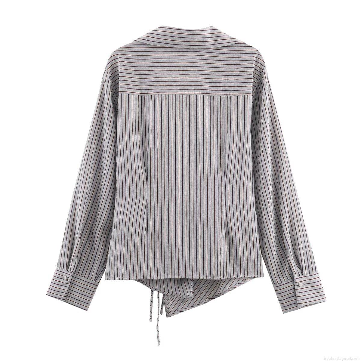 Stripe, Lapel, Irregular Hem, Splicing Design, Vertical Stripes, Tie Knot