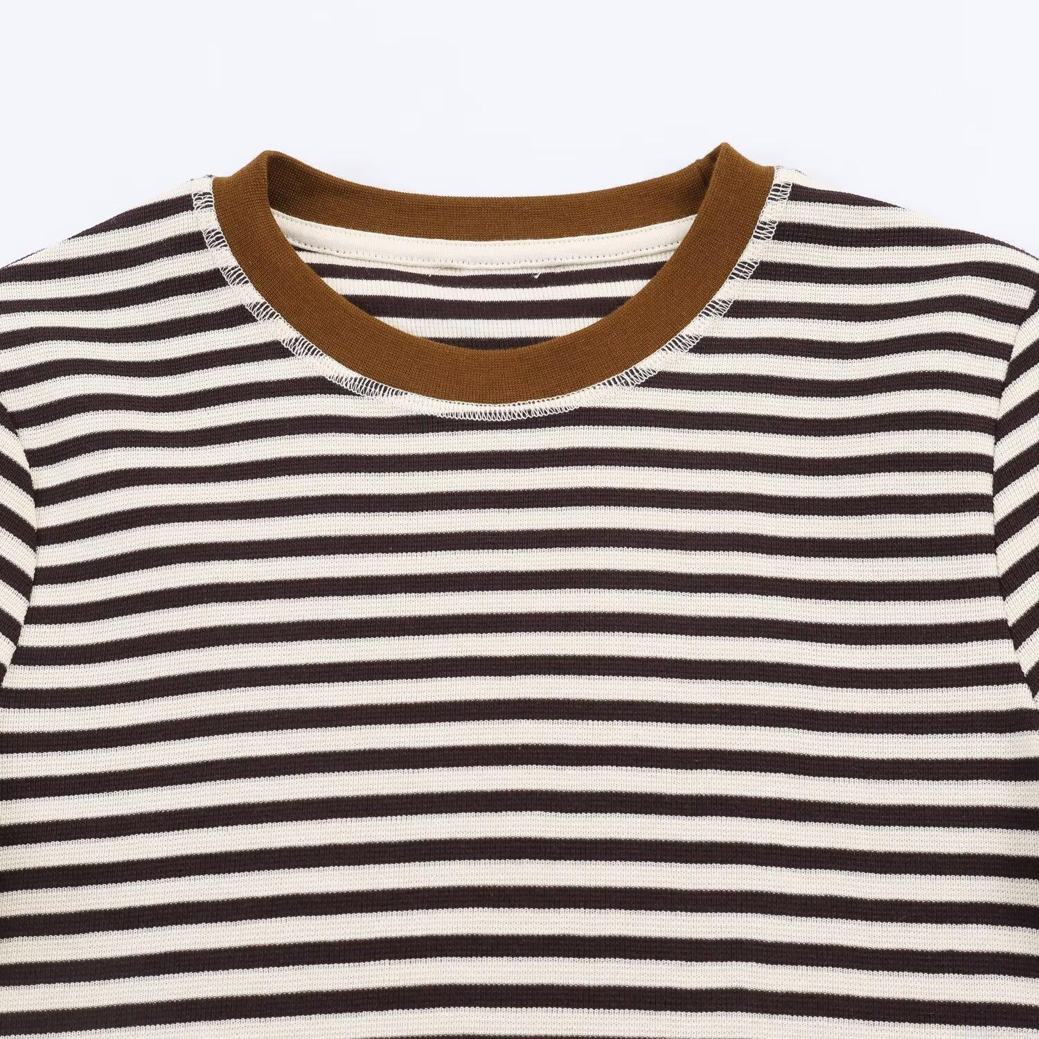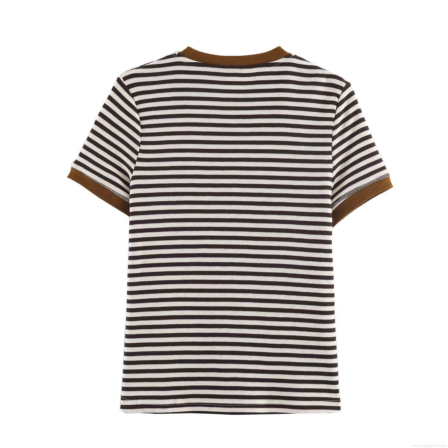 Women's Striped Short Sleeve T-Shirt Round Neck Knitted Polyester Brown White Casual Tee Top for Summer Daily Streetwear Fashion Women Clothes