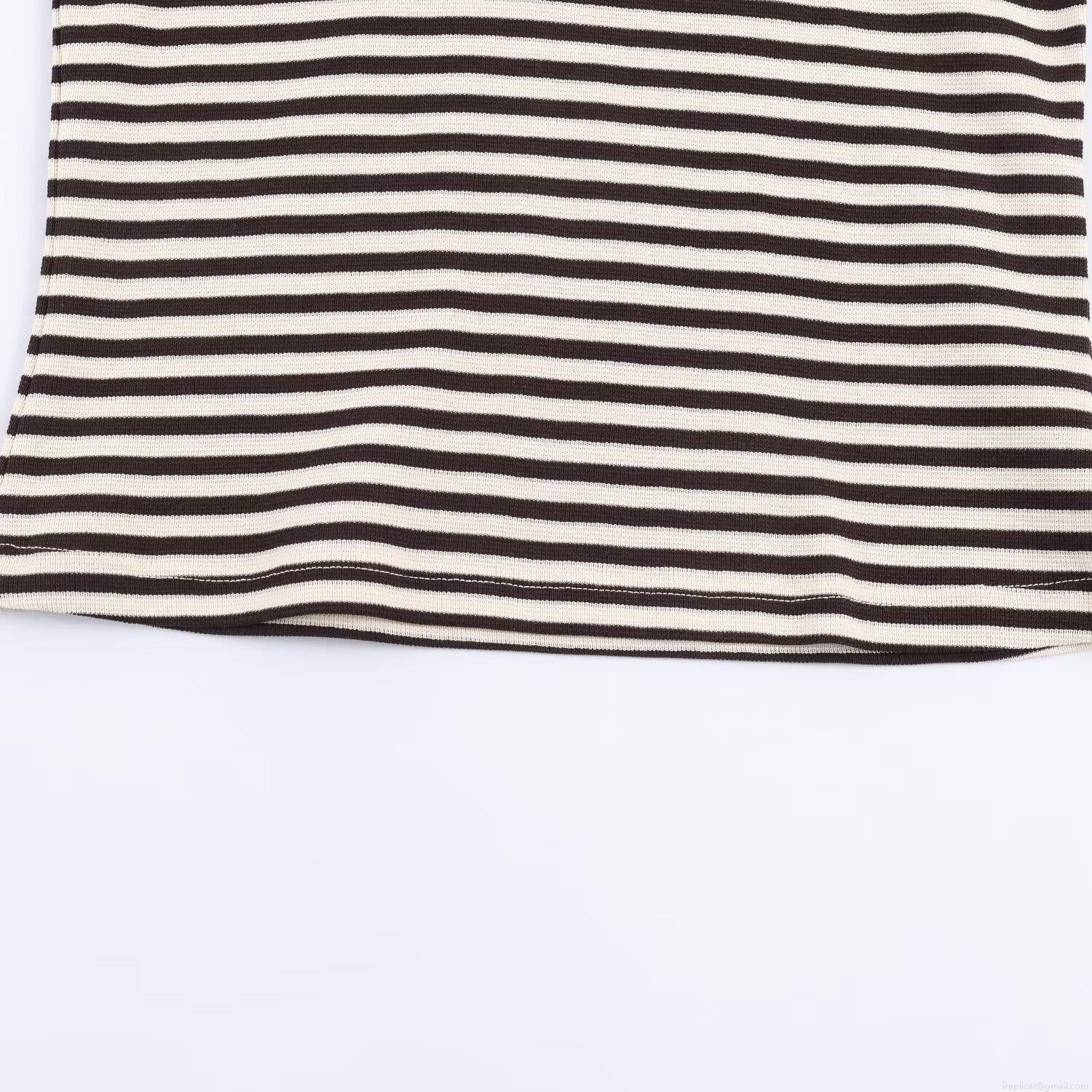 • Women's Striped Short Sleeve T-Shirt Round Neck Knitted Polyester Brown White Casual Tee Top for Summer Daily Streetwear Fashion Women Clothes