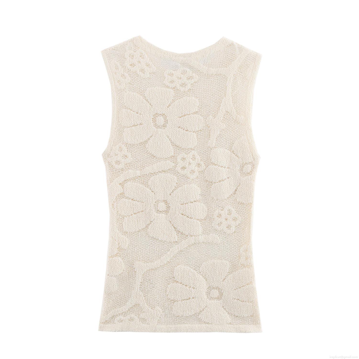 • Women's Summer Knitted Sleeveless Tank Top Elegant 3D Floral Relief Hollow Out Round Neck Pullover Streetwear Polyester Casual Tee Top