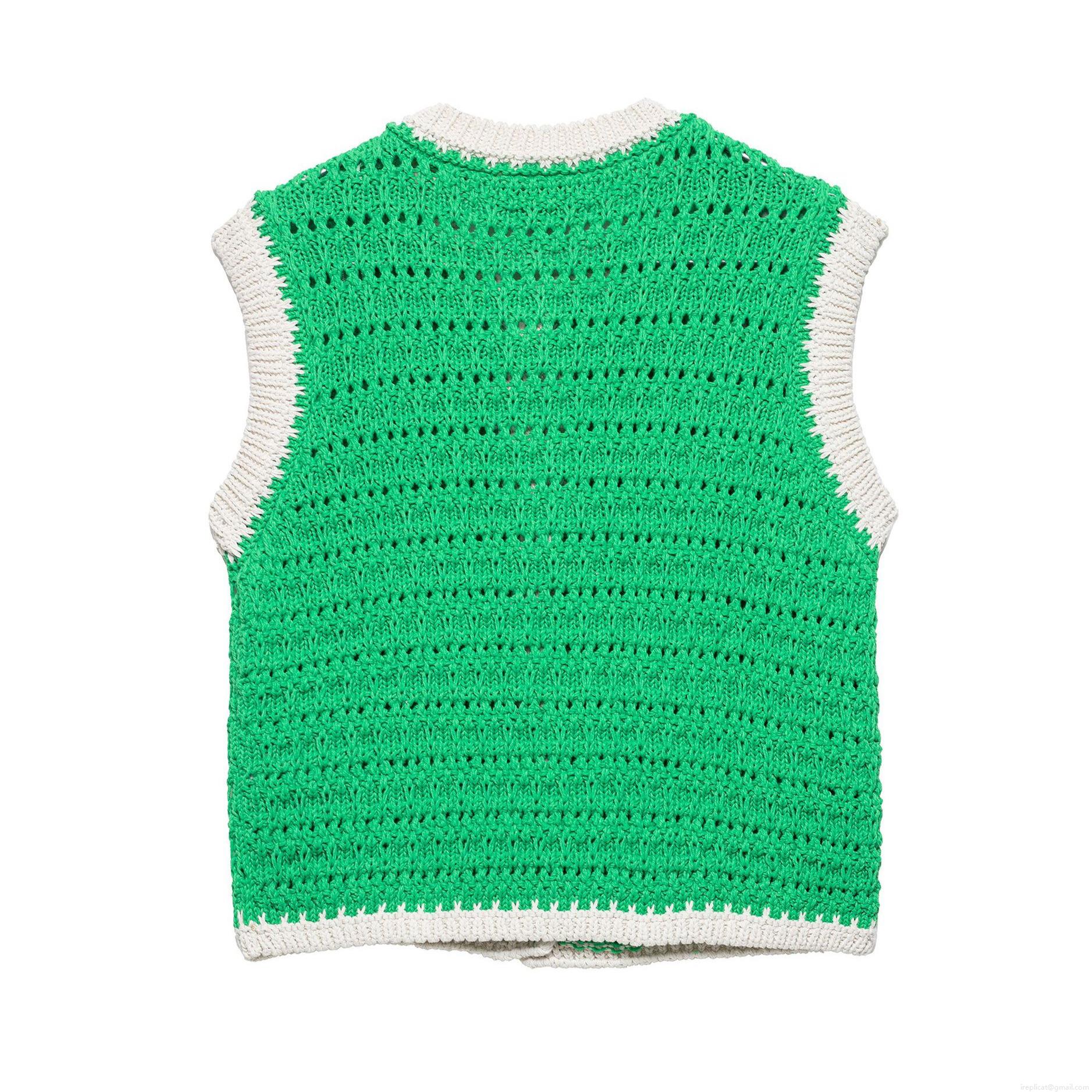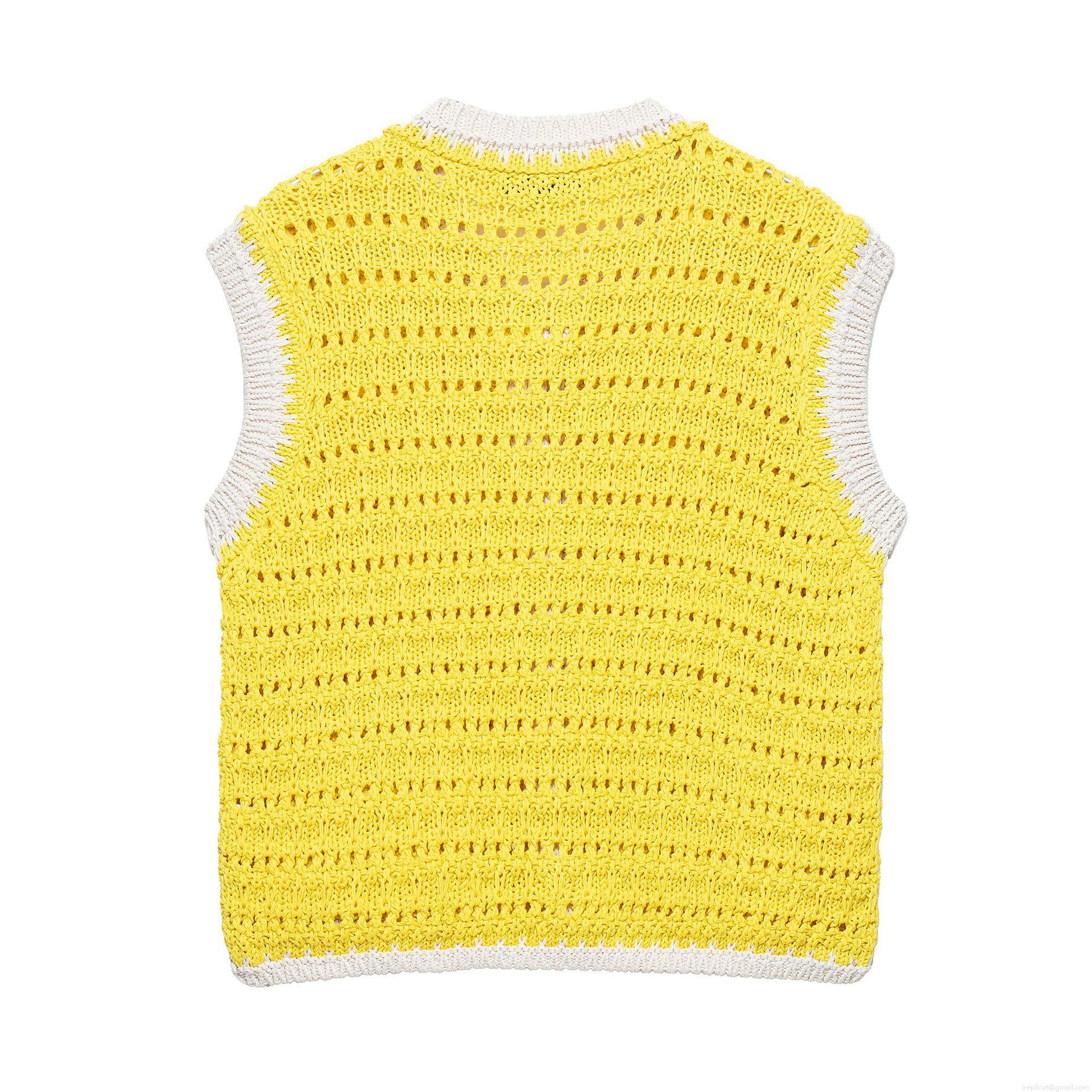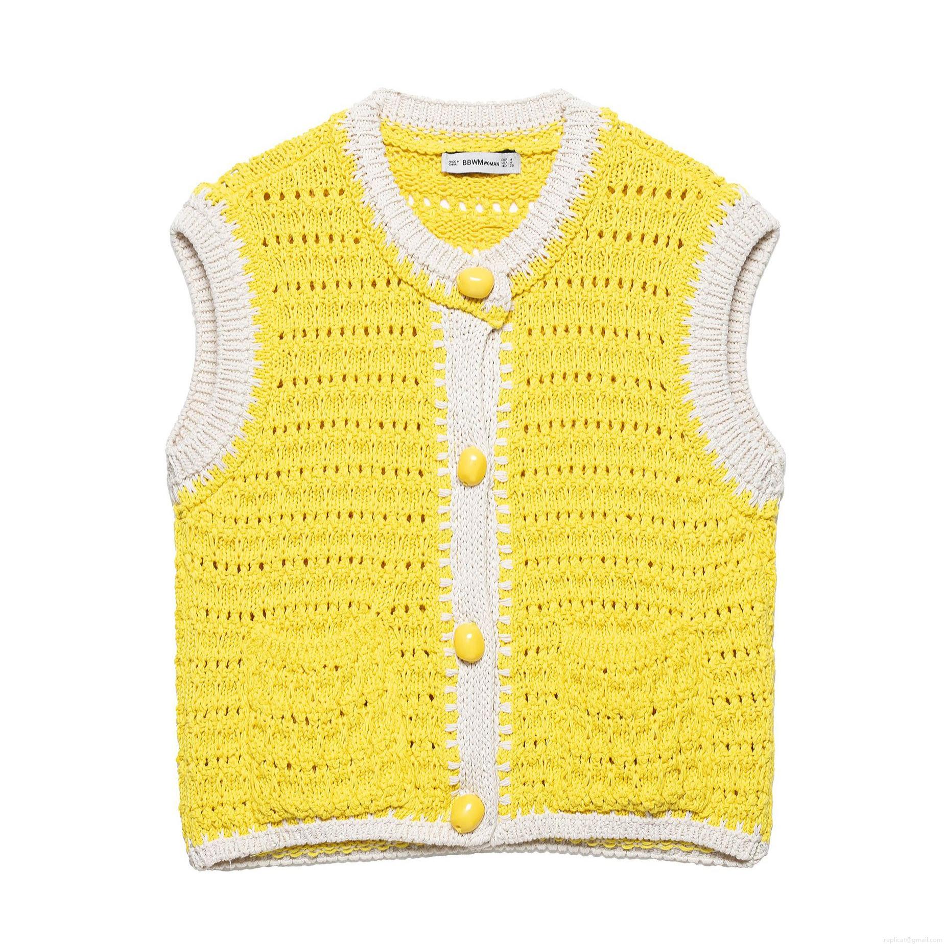 • Women's Vintage Crochet Knitted Vest Contrast Color Button Front Sleeveless Tank Top Sweet Casual Summer Knitwear Cropped Top