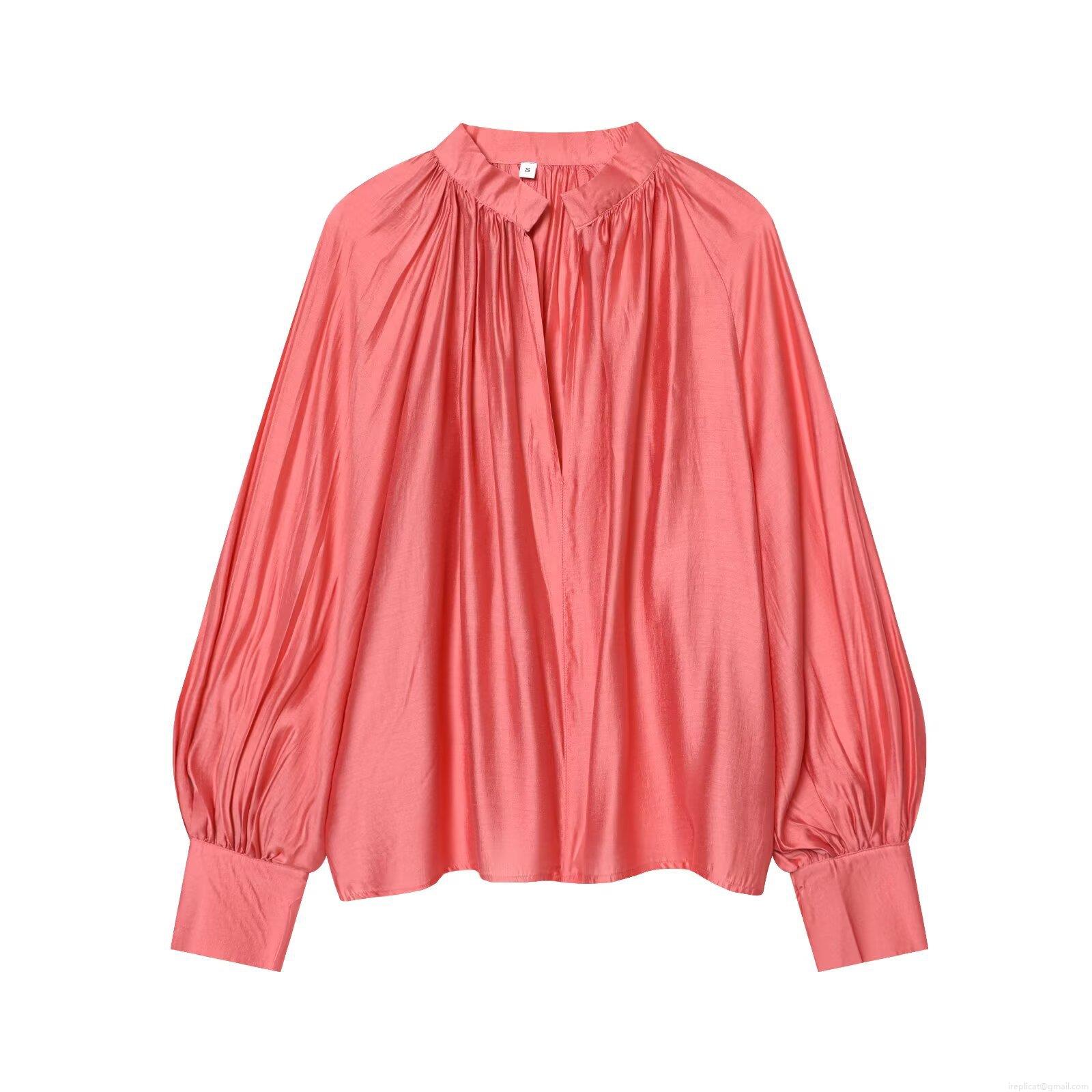 • Women's V-Neck Long Sleeve Blouse Polyester Satin Solid Color Button Up Lantern Sleeve Pleated Loose Casual Office Streetwear Fashion Top For Women