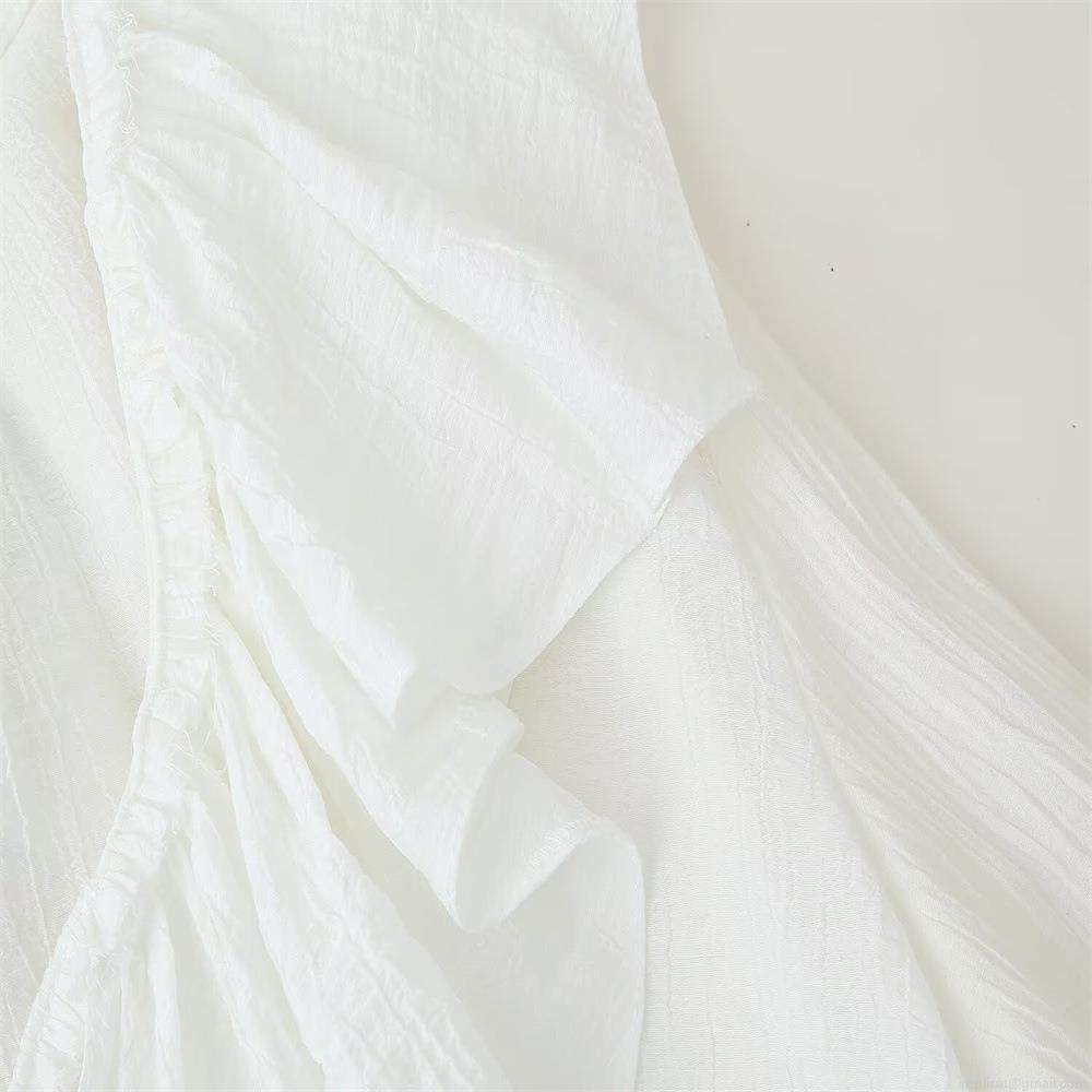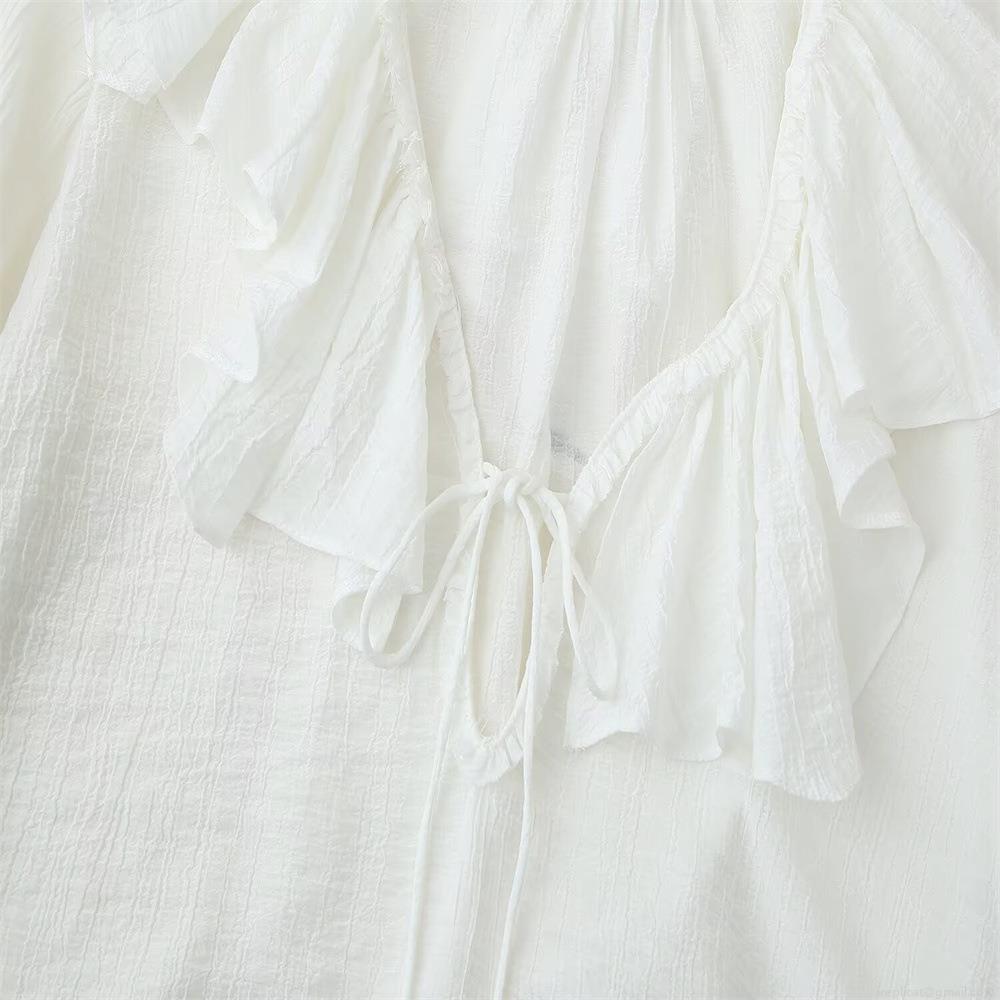 Solid Color, Ruffles, Lace, Collage, Layered Decoration, Wrinkled Texture, Bell Sleeves