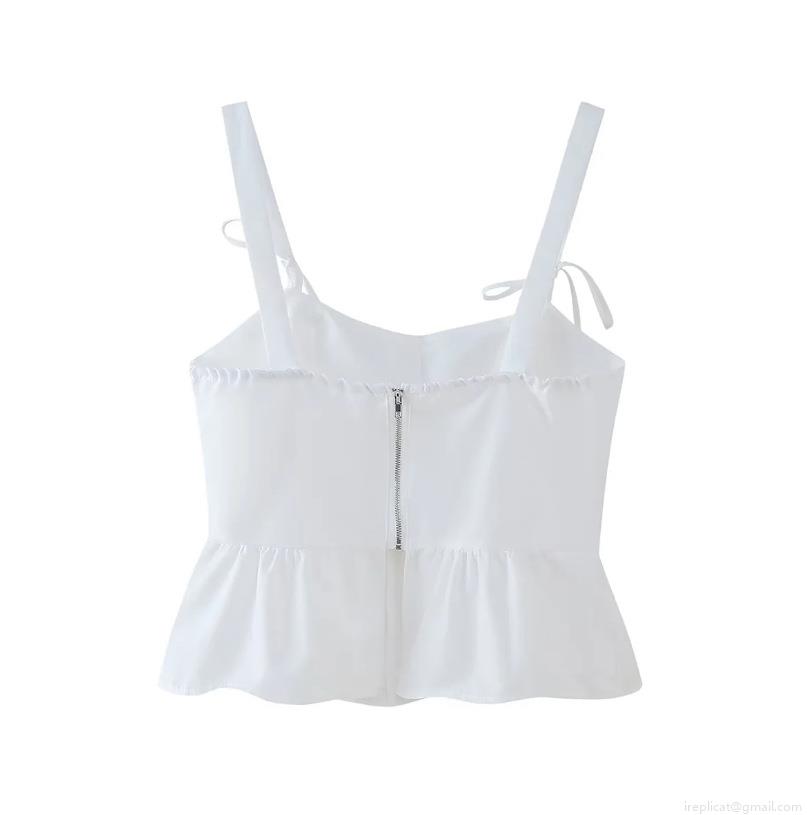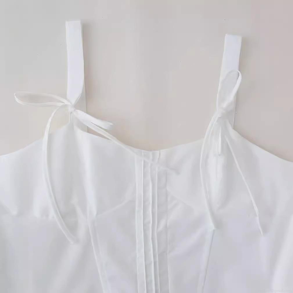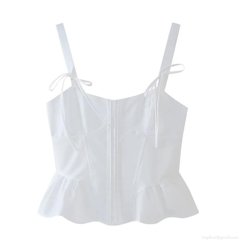 • Women's White Bow Camisole Top 100% Polyester Slim Fit Corset Top Fishbone Spaghetti Strap Peplum Hem French Vintage Style Sexy Summer Party Tops