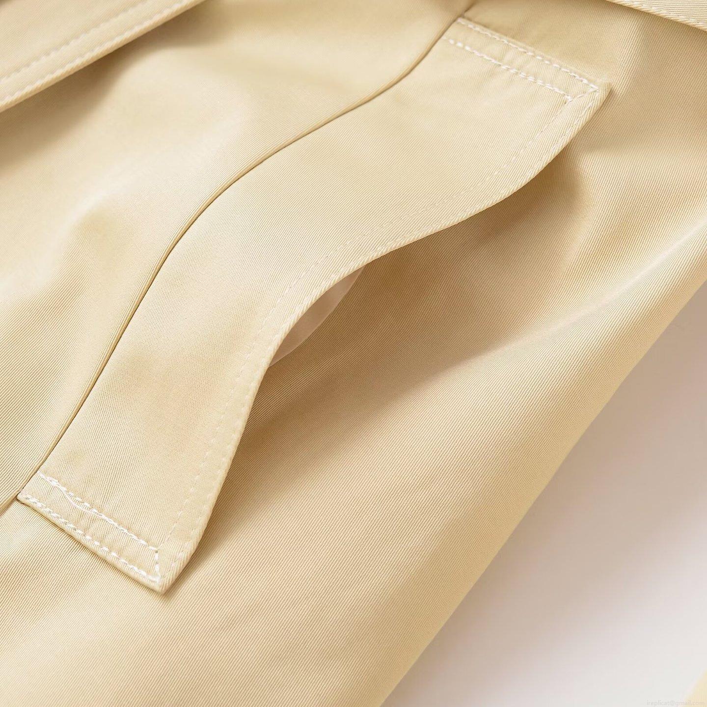 Solid Color, Pocket, Belt, Double-breasted, Twill Texture