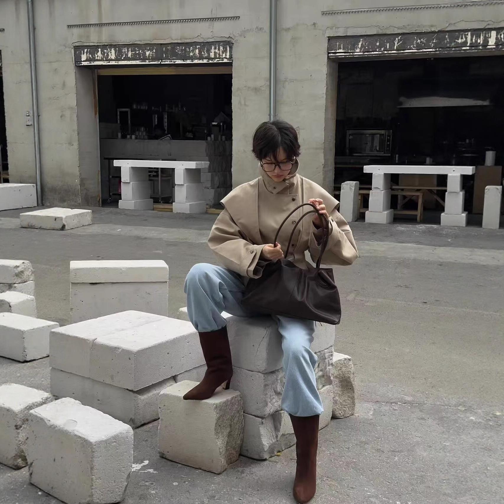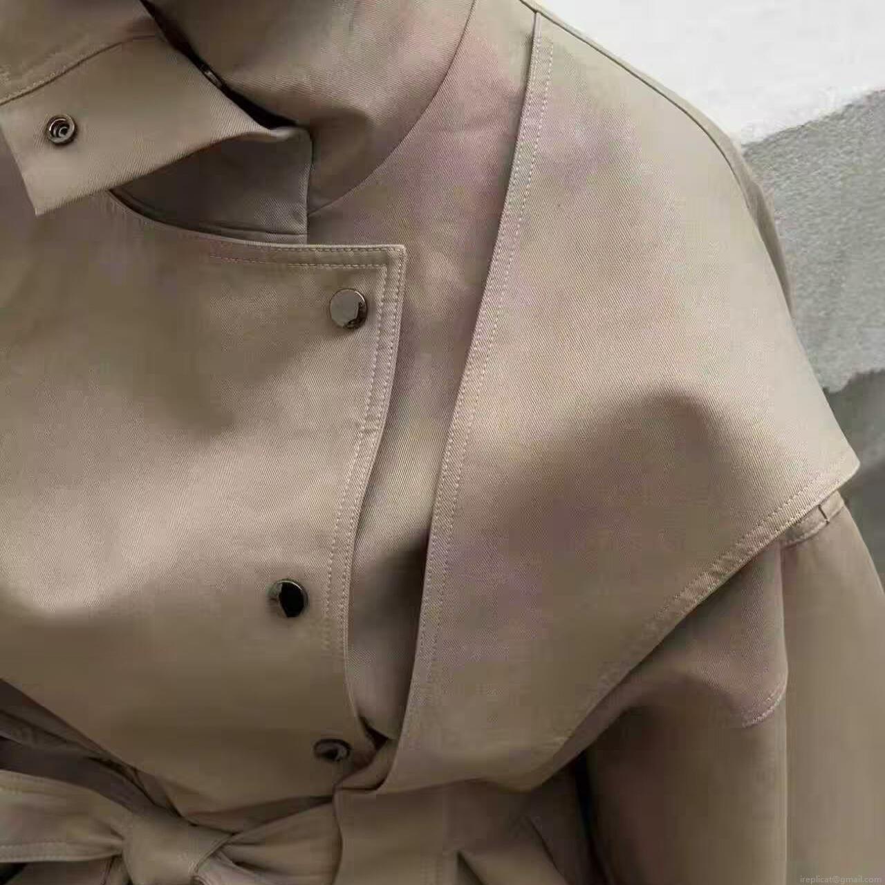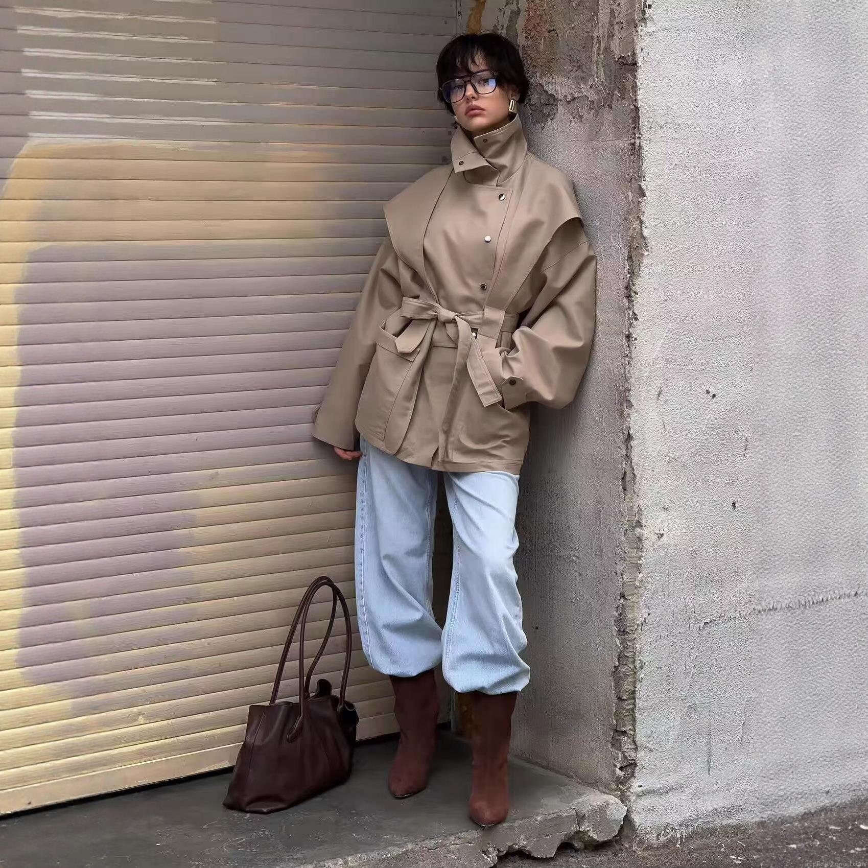 Solid Color, Buttons, Stand-up Collar, Double-breasted, Fabric Belt, Shoulder Windshield
