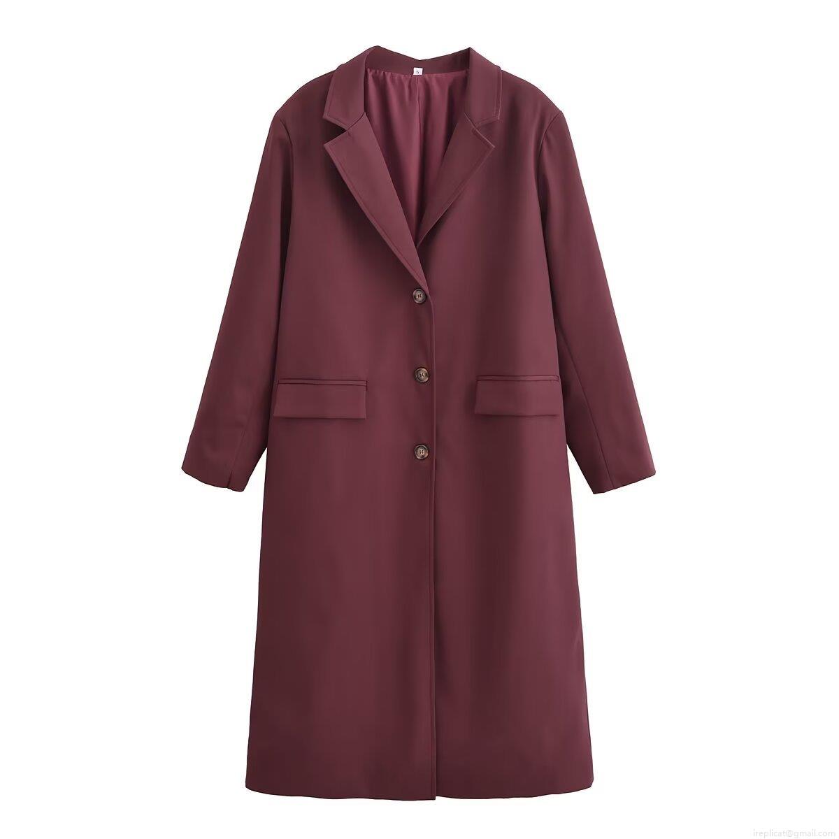 • Elegant Women's Long Trench Coat Suit Collar Single Breasted Loose Polyester Overcoat For Autumn Winter Urban Commuting Fashion Long Sleeve Solid Color Outerwear