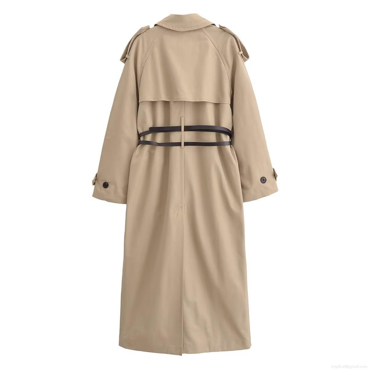 Women Classic Double Breasted Long Trench Coat With Belt Elegant Lapel Long Sleeve Solid Color Polyester Windbreaker Jacket Autumn Winter Ladies Fashion Outerwear