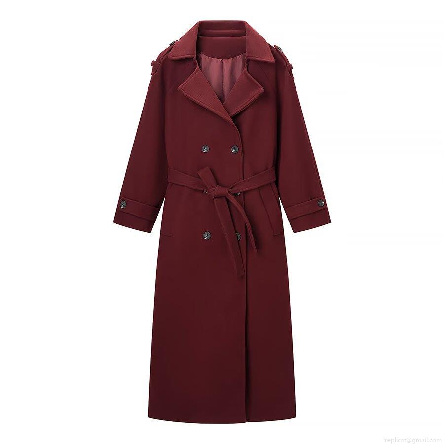 • Women Elegant Double Breasted Wool Blend Trench Coat Long Winter Overcoat With Belt Classic Lapel Office Lady Windbreaker Outerwear