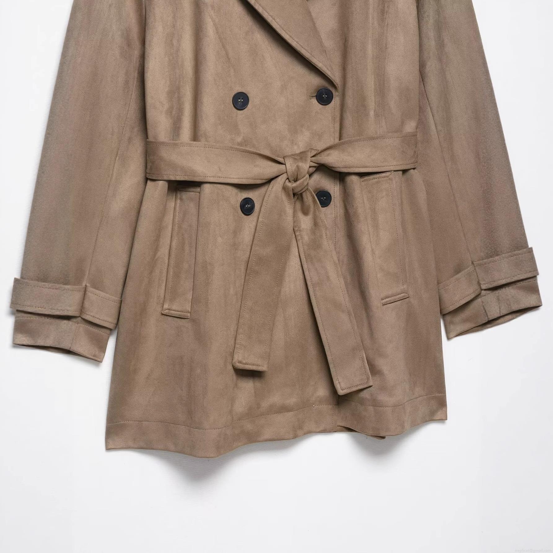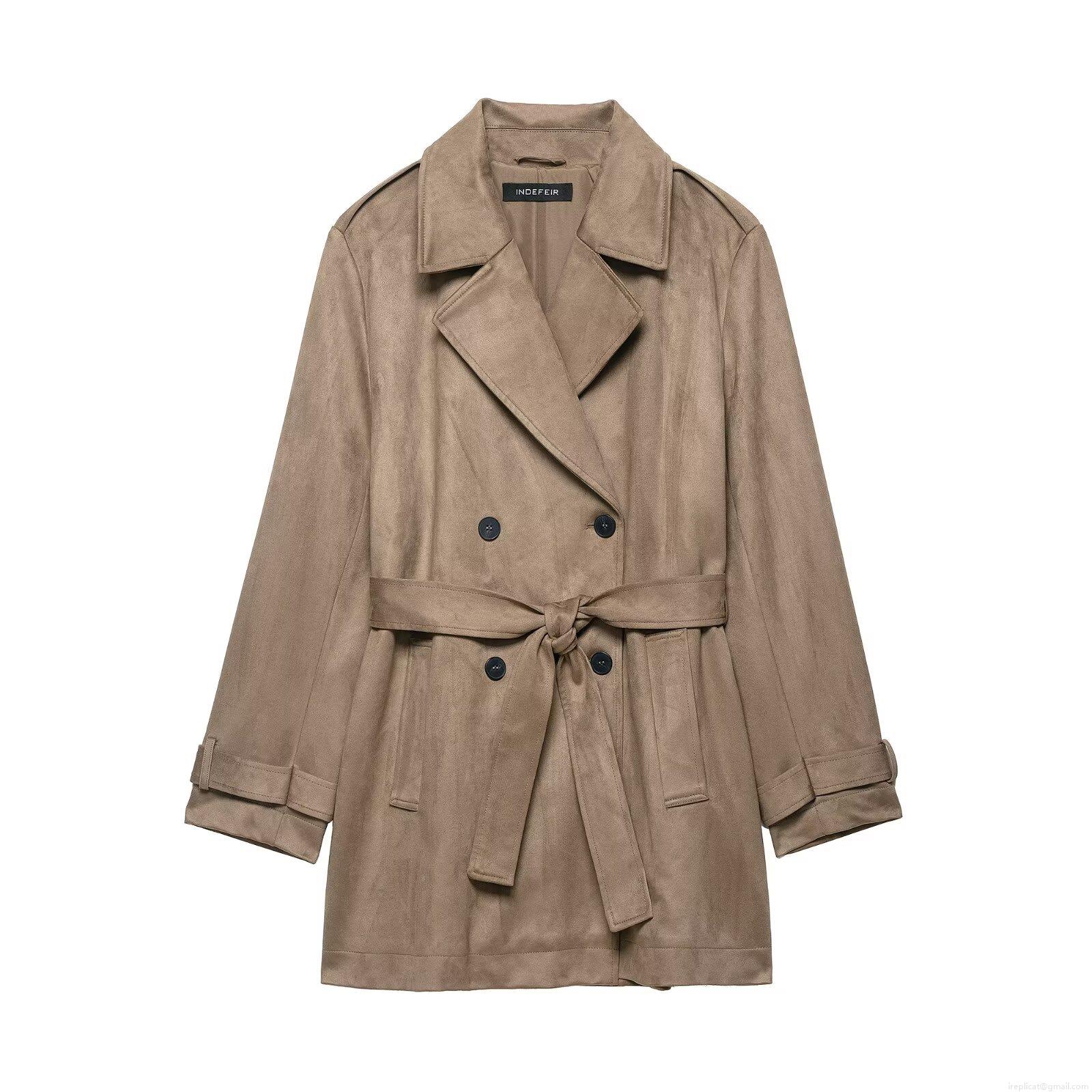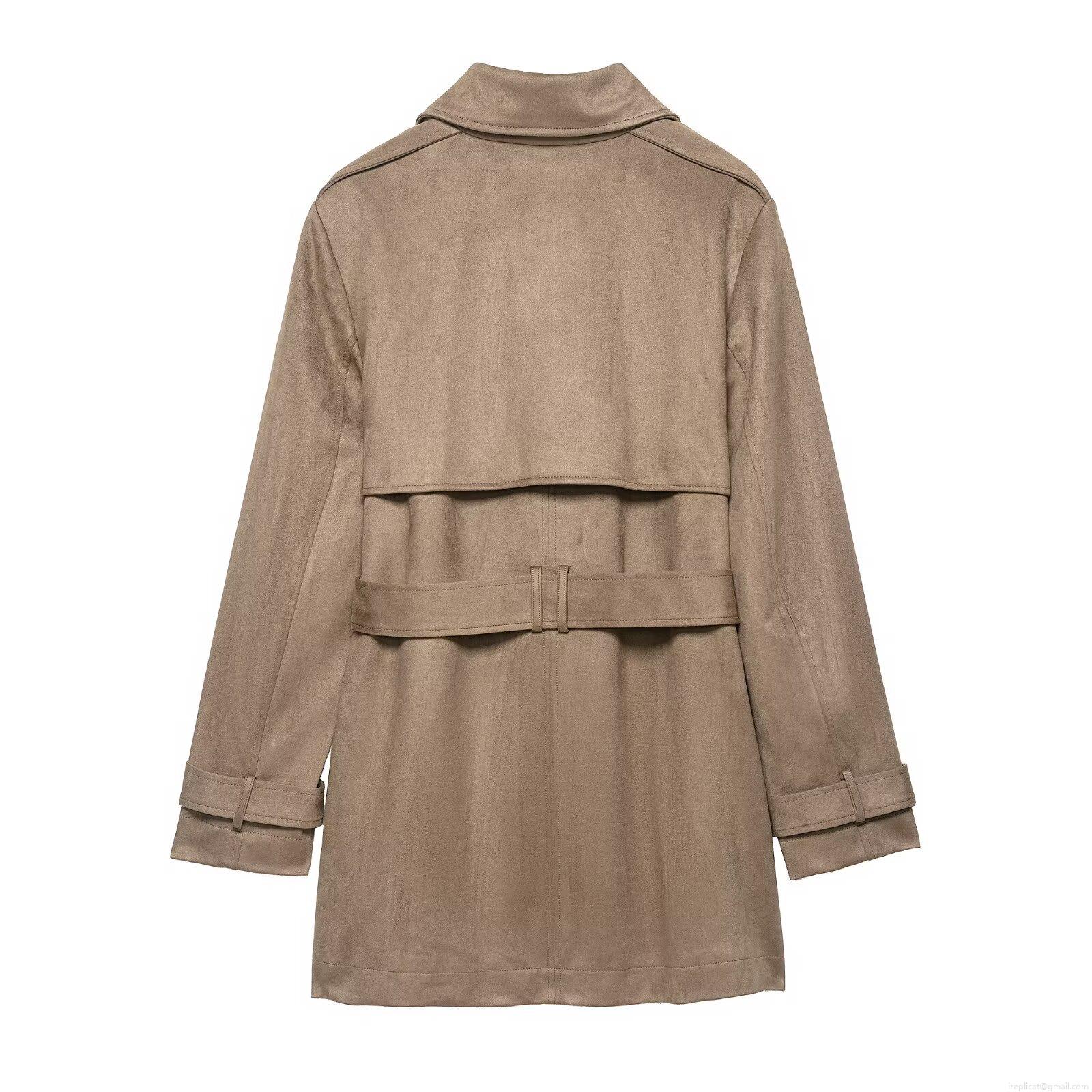 • Women Fashion Suede Trench Coat Double Breasted Mid-Long Windbreaker With Belt Elegant Casual Autumn Winter Outerwear Jacket For Ladies