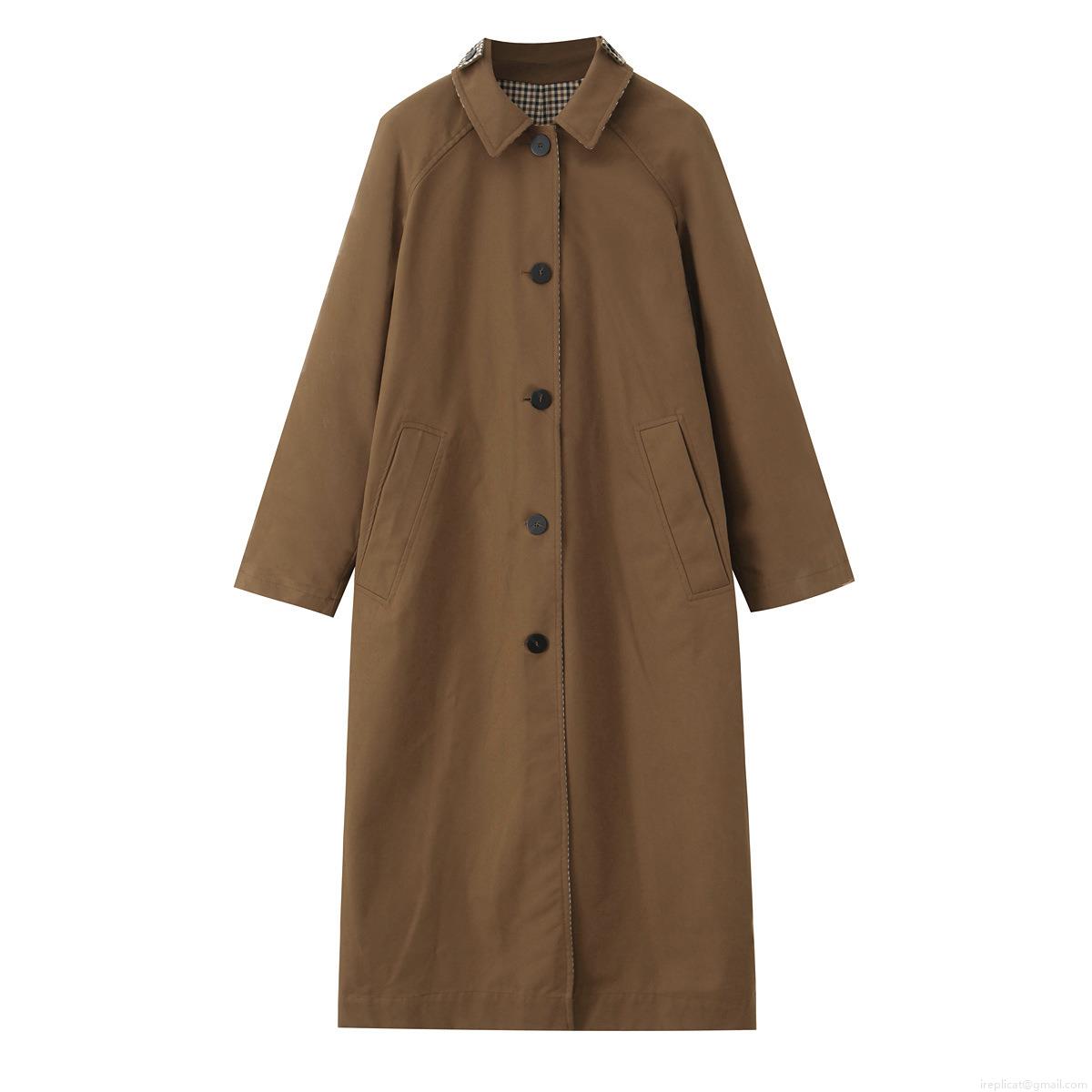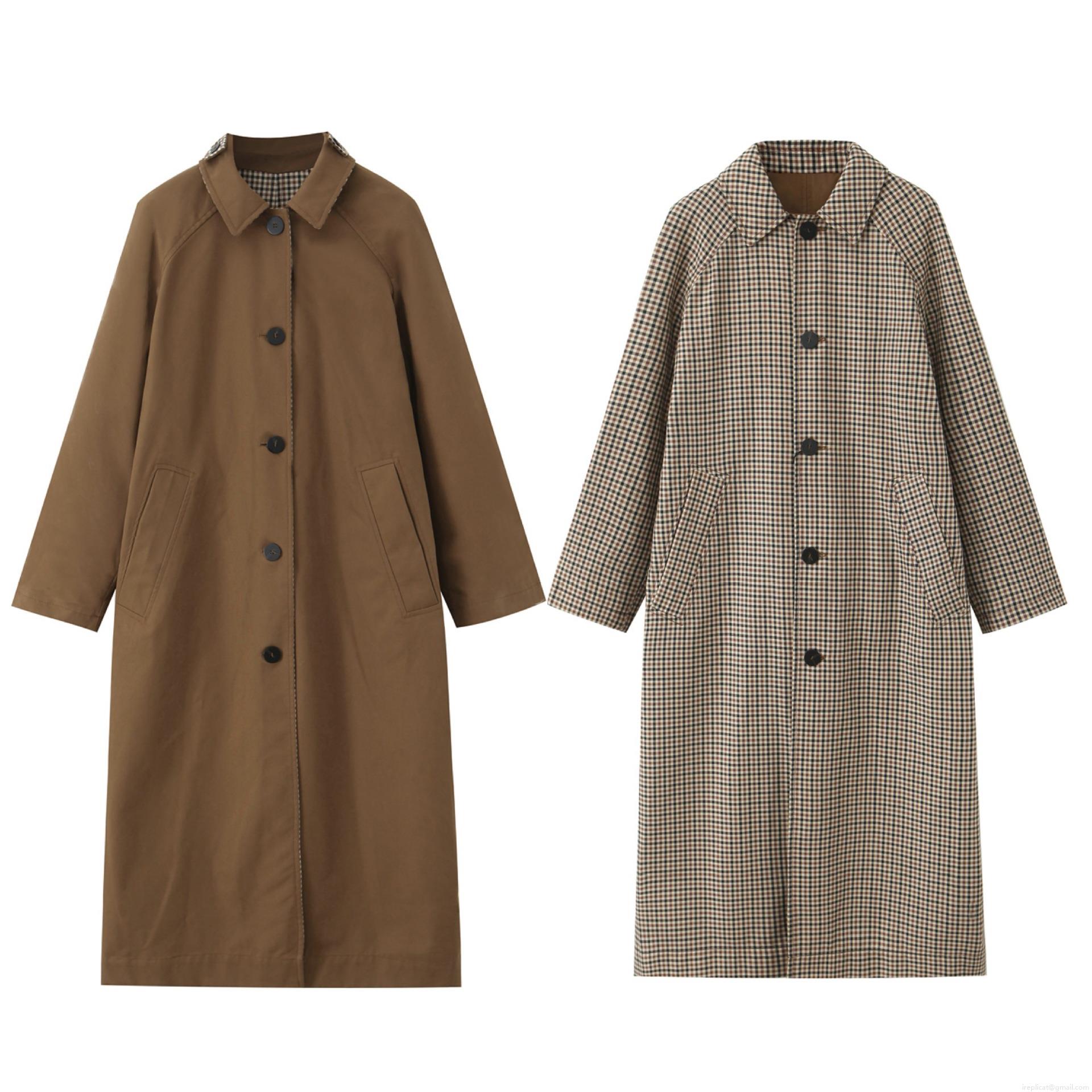 • Women Long Trench Coat Double-Sided Wear Polyester Plaid Lining Windproof Overcoat Casual Elegant Autumn Winter Outerwear For Women