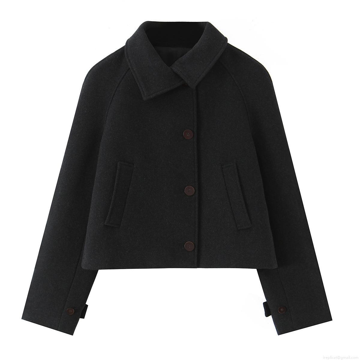 • Women Modern Short Trench Coat Jacket Woolen Feel Polyester Fabric Asymmetric Lapel Long Sleeve Single Breasted With Pockets Autumn Winter Chic Streetwear Outerwear