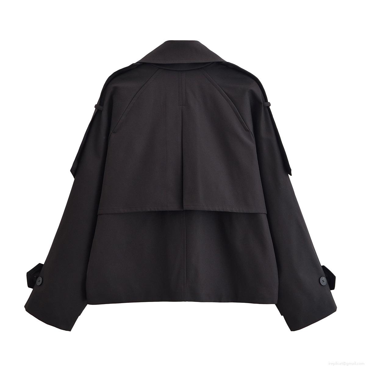 • Women Short Trench Coat 100% Polyester Double Breasted Lapel Jacket With Epaulettes Casual Elegant Commute Windbreaker Outerwear For Lady