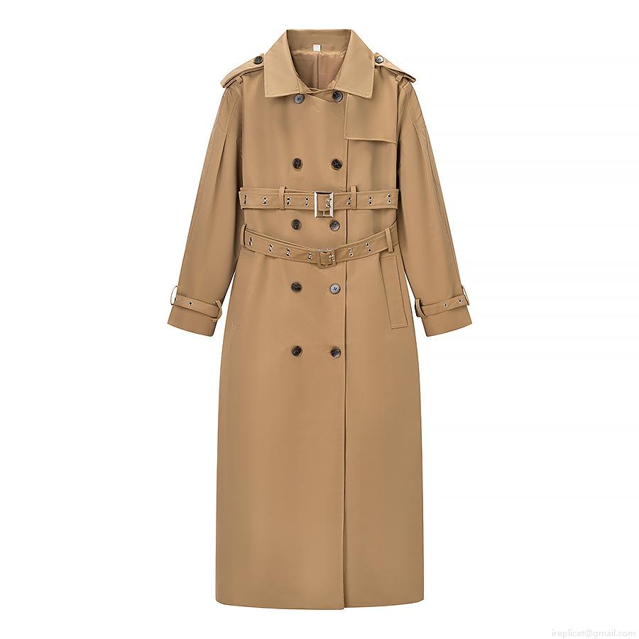 • Women's Classic Double Breasted Long Trench Coat Elegant Khaki Windbreaker With Waist Belt For Spring Autumn Lady Office Overcoat