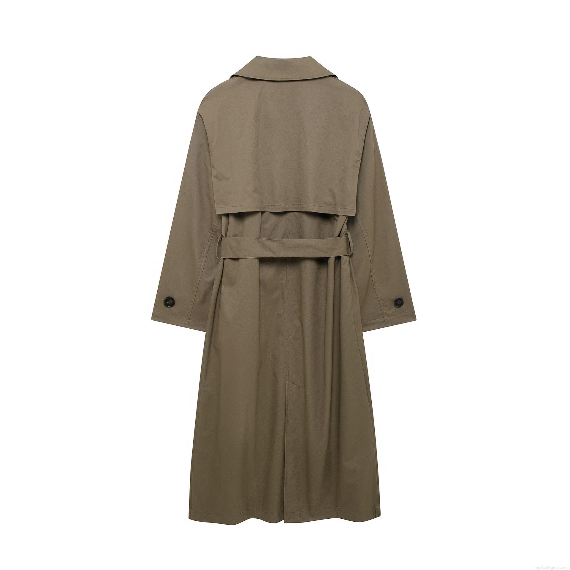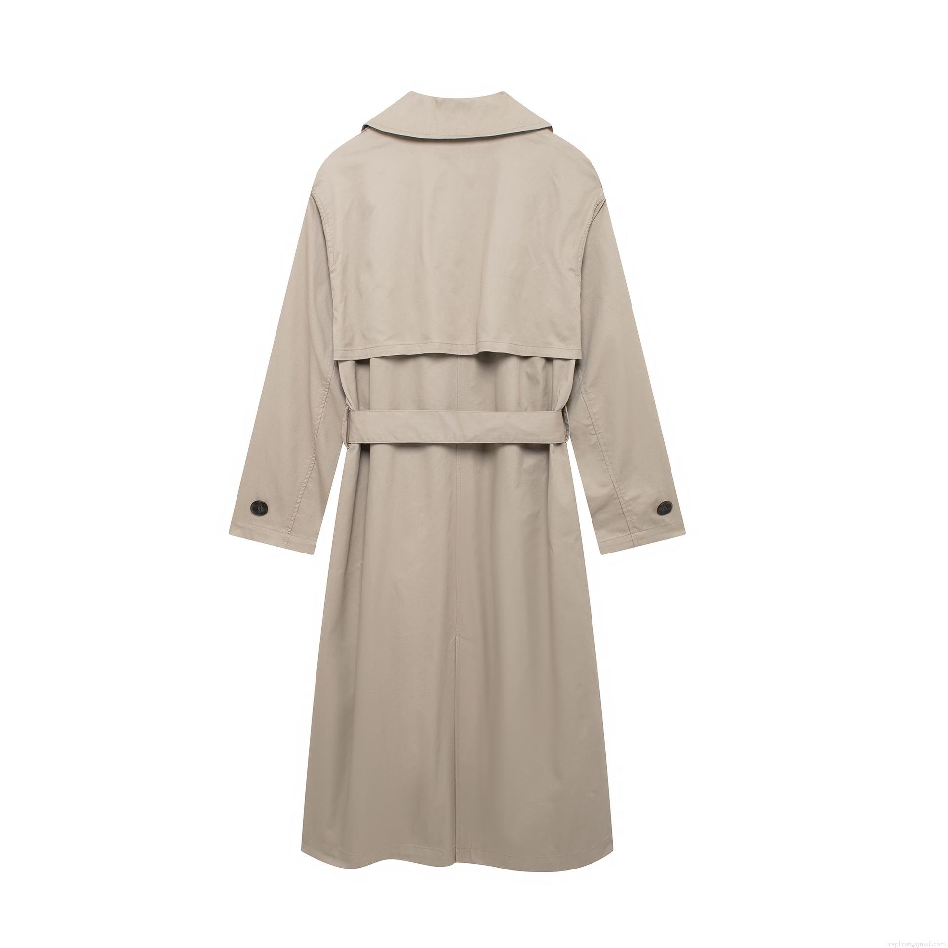 • Women's Classic Double Breasted Long Trench Coat With Belt Solid Color Lapel Long Sleeve Windbreaker Polyester Jacket For Autumn Winter Streetwear