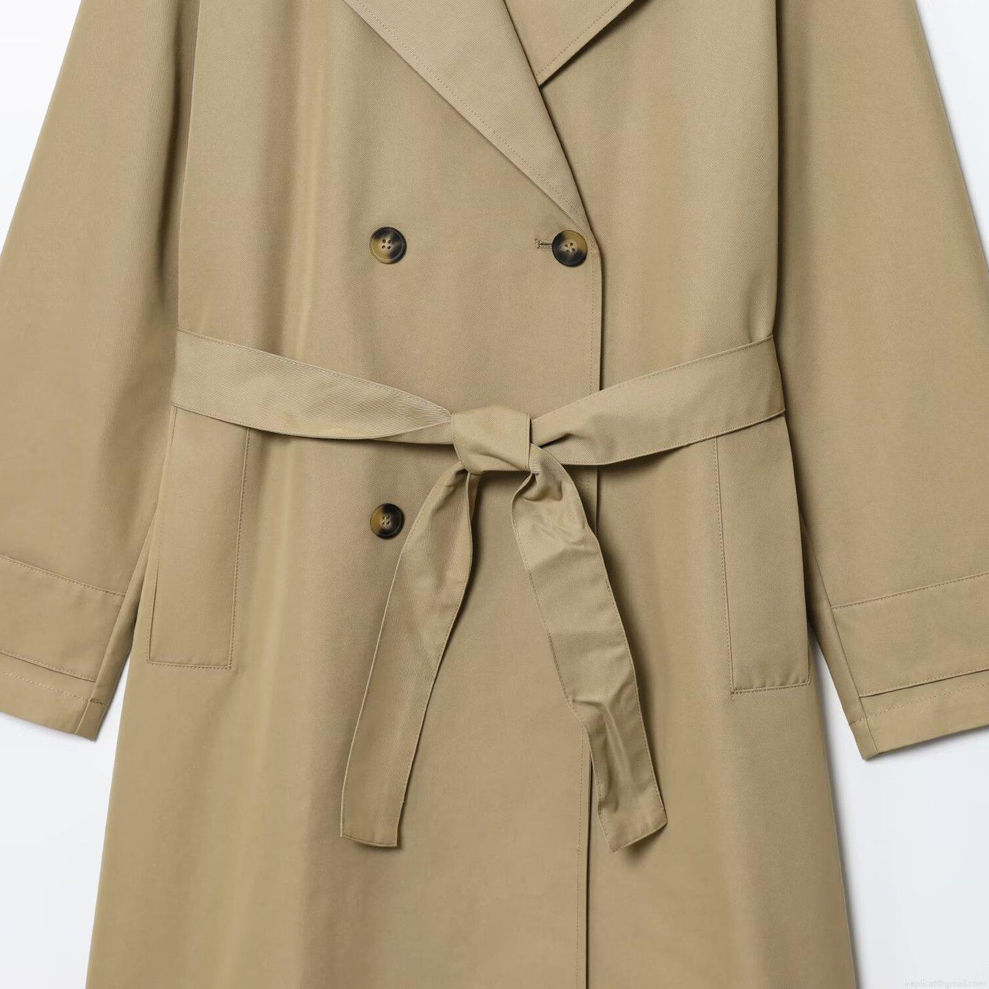 Women's Classic Double-Breasted Long Trench Coat Elegant Khaki Windbreaker With Belt Lapel Long Sleeve Outerwear For Women Office Casual Wear