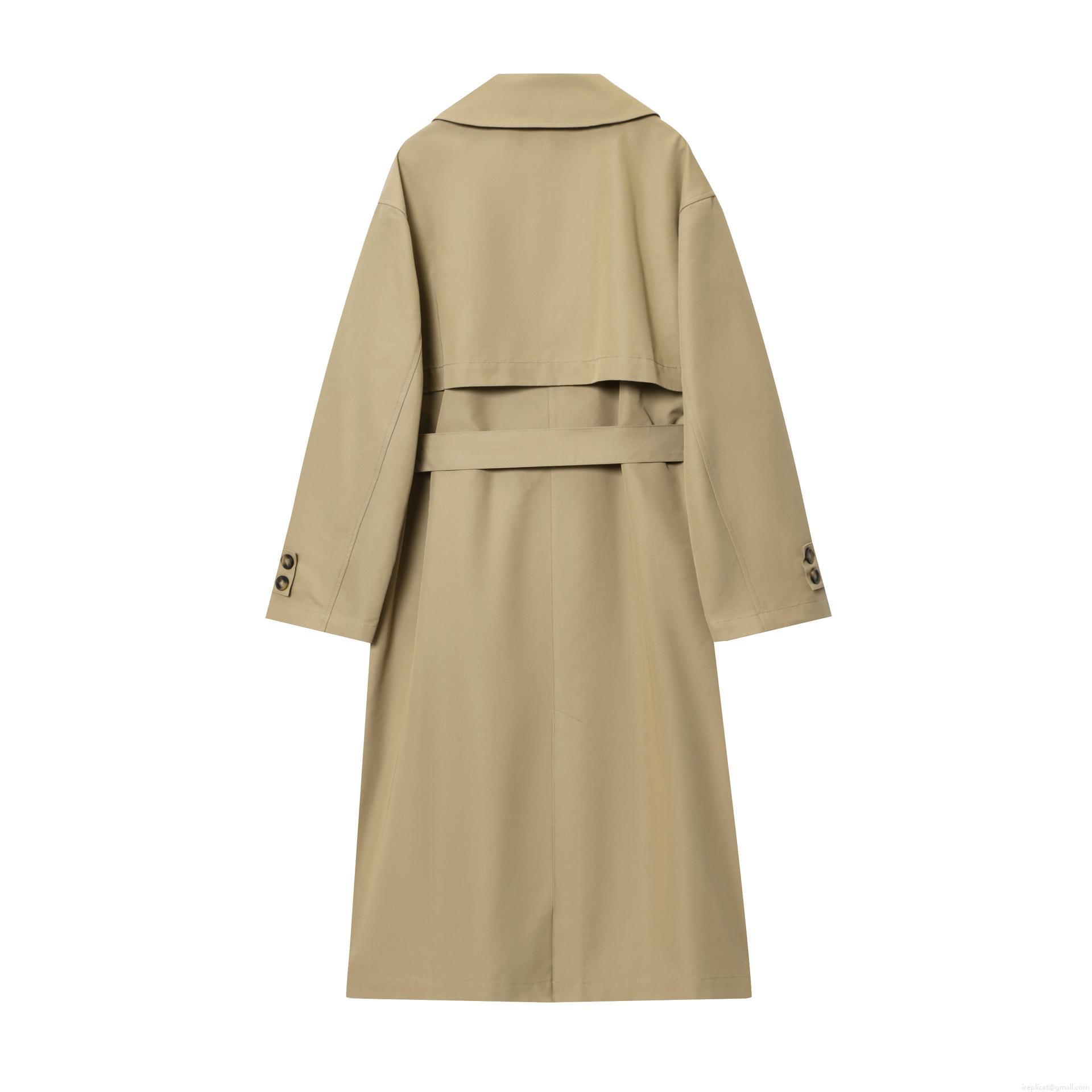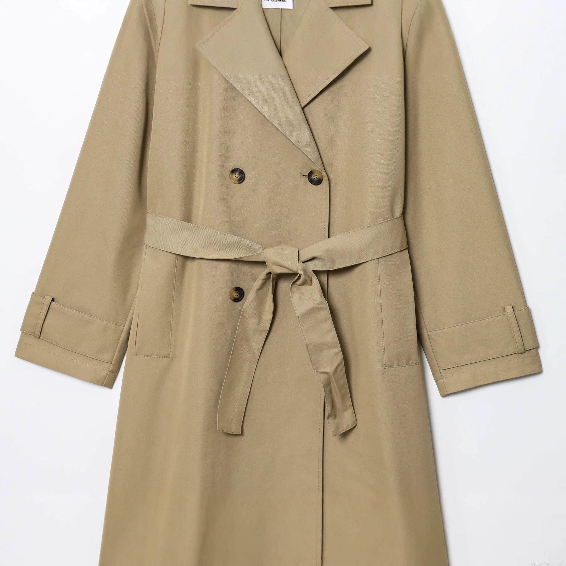 • Women's Classic Khaki Long Trench Coat Double-Breasted Cotton Blend Overcoat With Adjustable Belt Elegant Commuter Windbreaker For Ladies