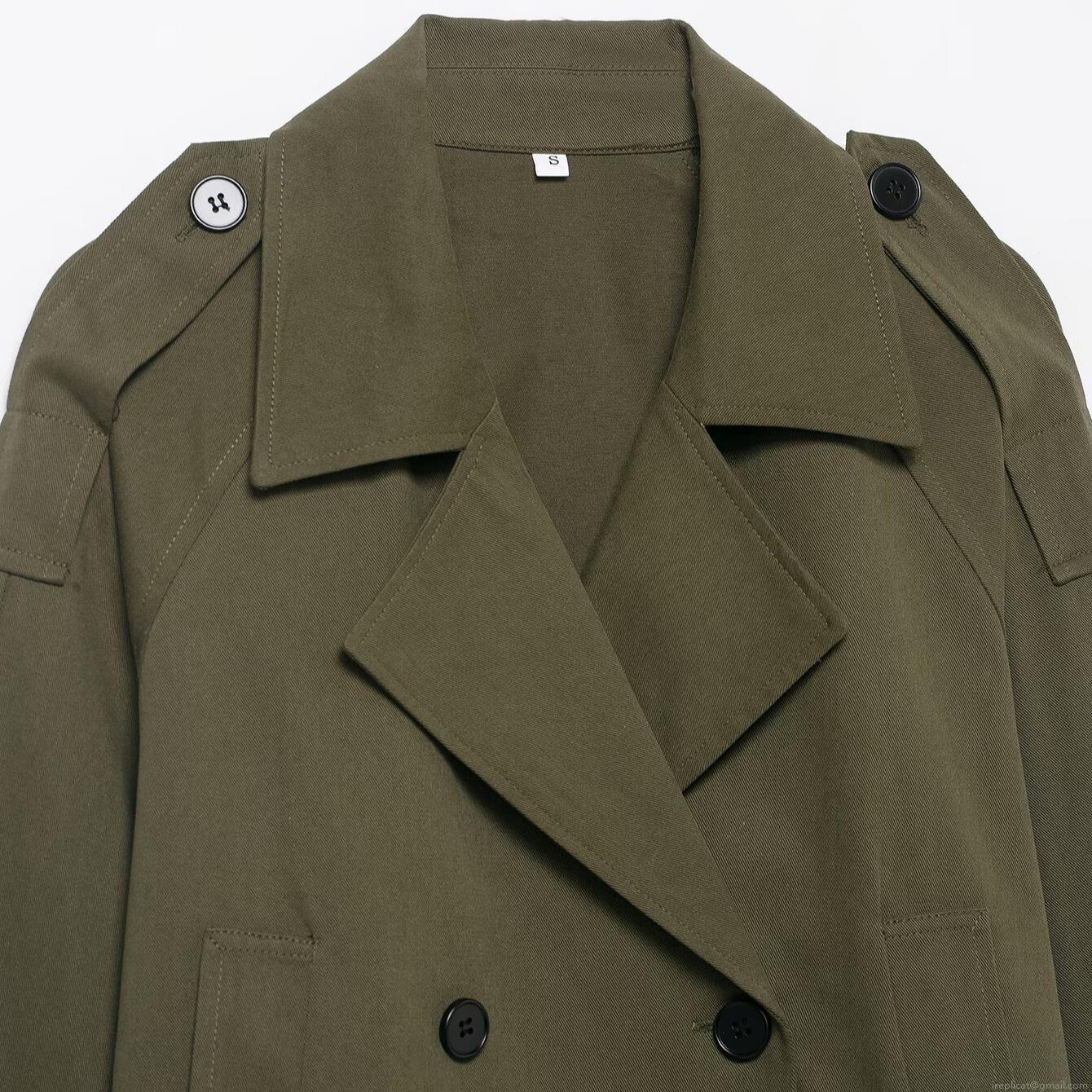 • Women's Double Breasted Short Trench Coat 100% Polyester Oversized Lapel Jacket With Pockets Casual British Style Outerwear For Women