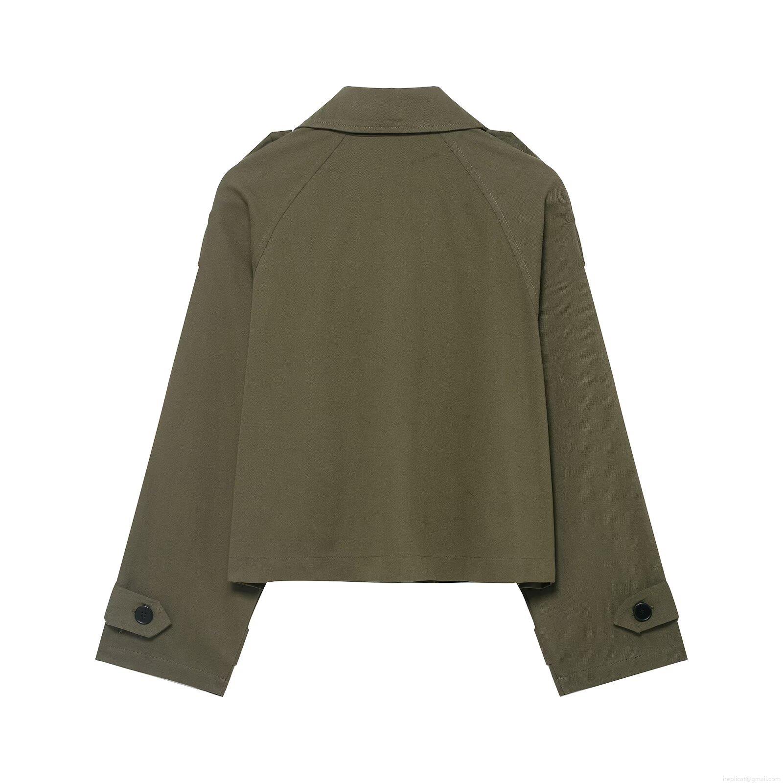 Women's Double Breasted Short Trench Coat 100% Polyester Oversized Lapel Jacket With Pockets Casual British Style Outerwear For Women